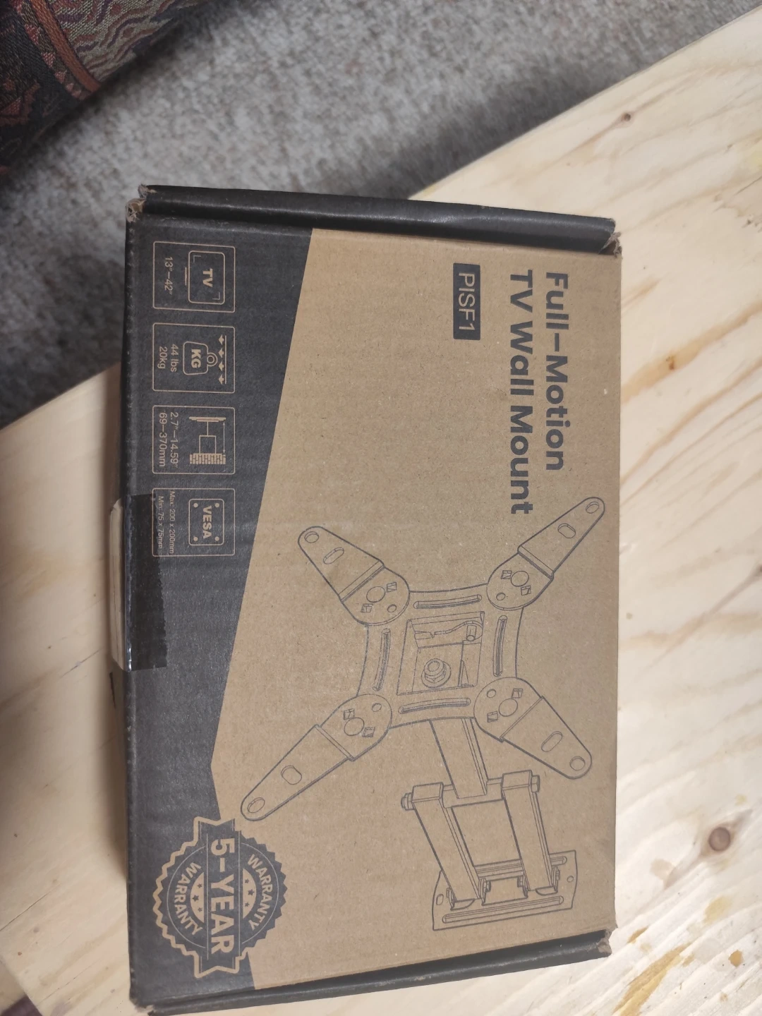 This is a PISF1 full-motion TV wall mount. It's designed for TVs 13"-42" and supports up to 20kg. The mount comes with all necessary hardware and instructions for installation.