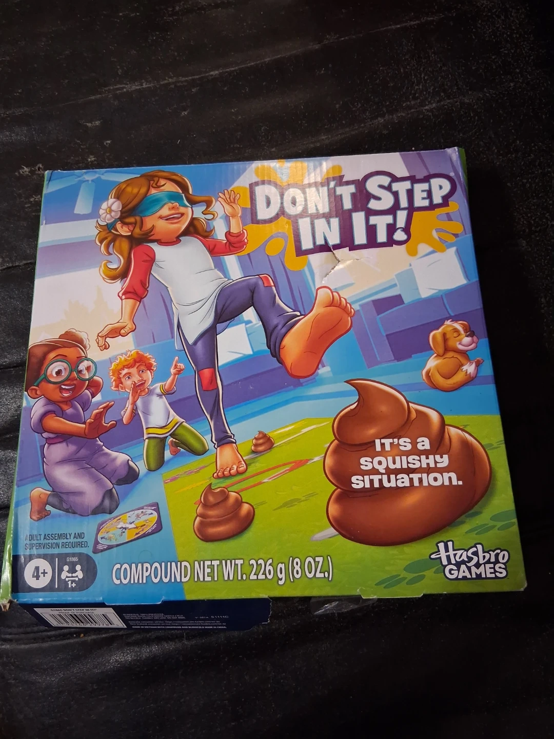 Don't Step In It! is a hilarious board game from Hasbro Games. It's a squishy situation! Includes compound net wt. 226g (8 oz.). Fun for ages 4+ and 1+ players.