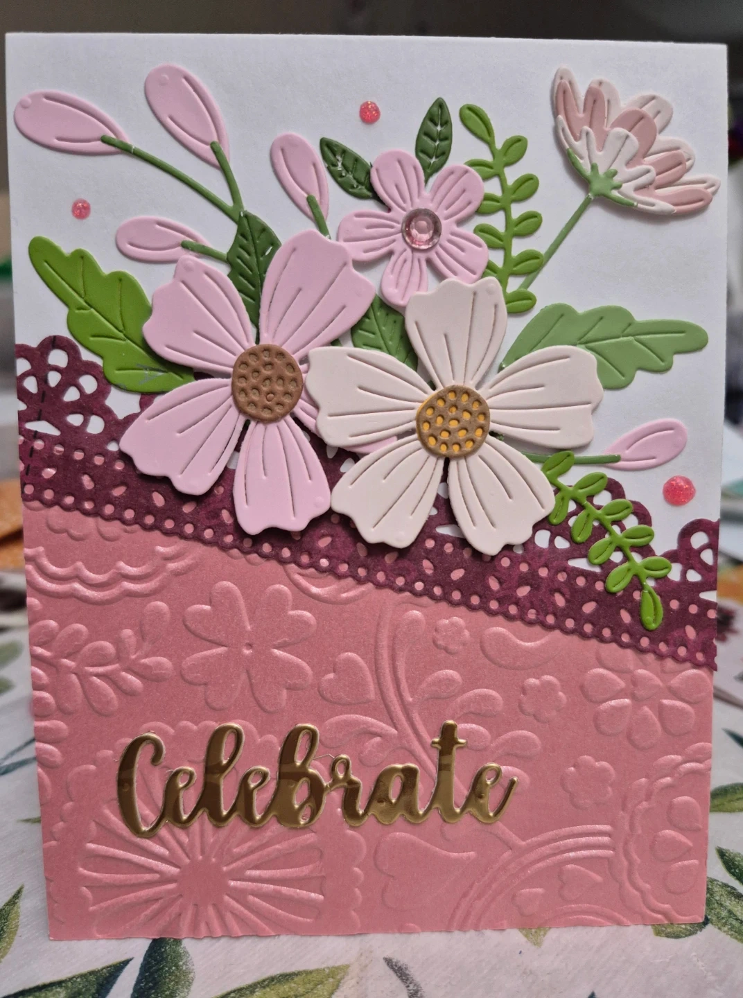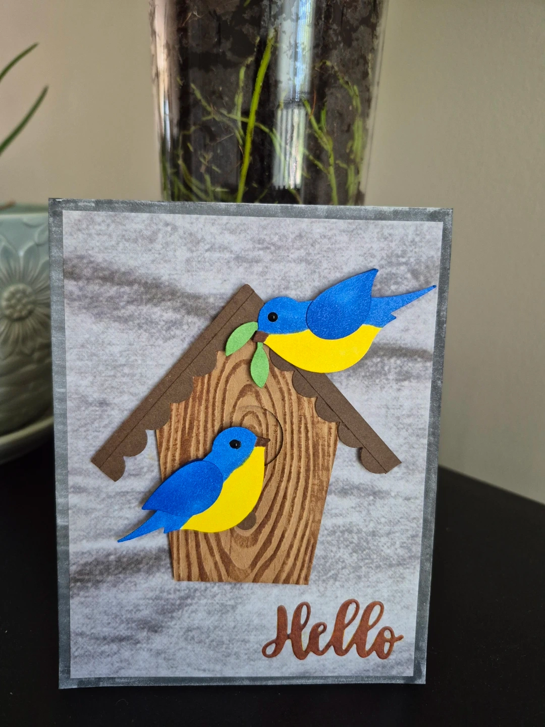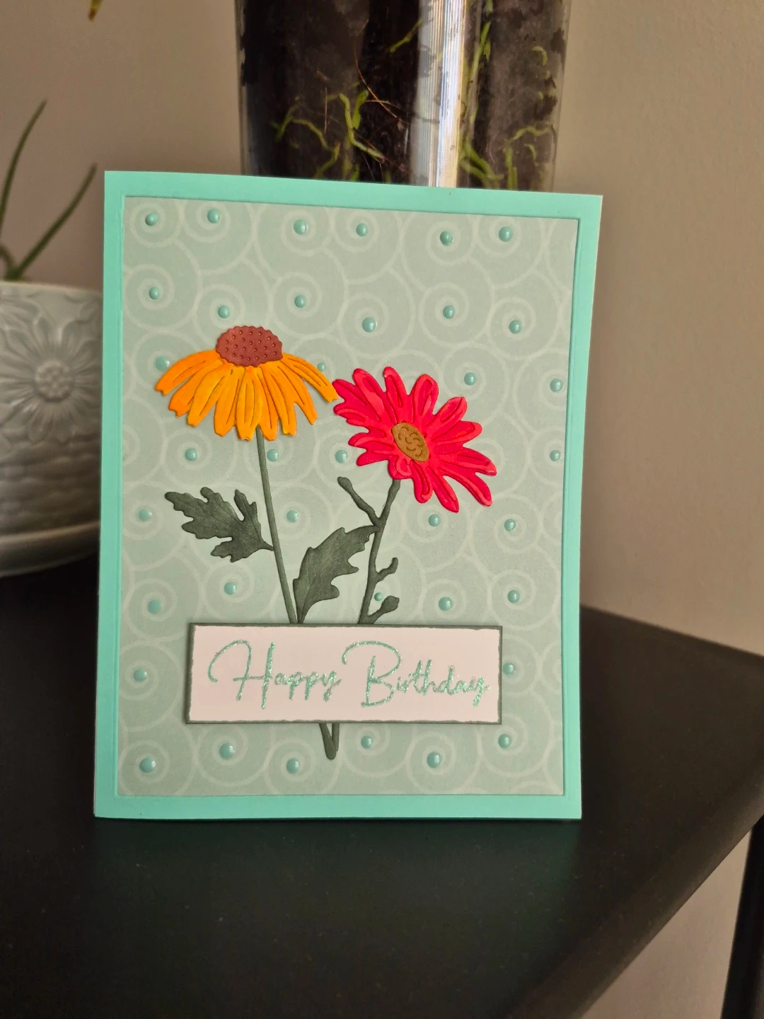 Handmade cards for all occasions. Prices vary by design complexity. $5 and up per card. Features a guitar 'You Rock' card, a knitting-themed card, a floral card, a clown card, and a daffodil card. Great for any occasion! Contact more more designs.