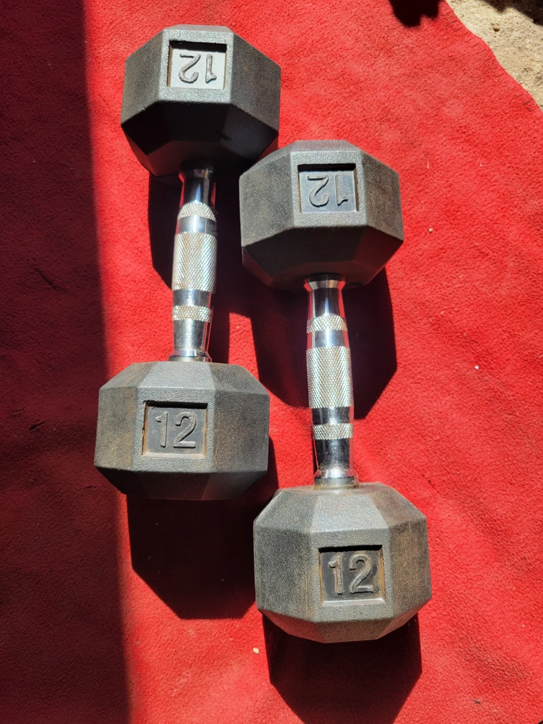 SET OF 12LB RUBBER COATED HEXHEAD DUMBBELLS TOTAL 24LBs