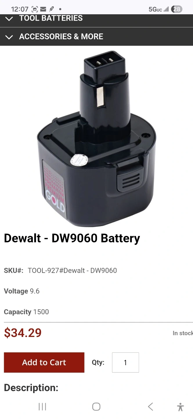 OEM DeWalt batteries ≈ $34 each ($68 total)