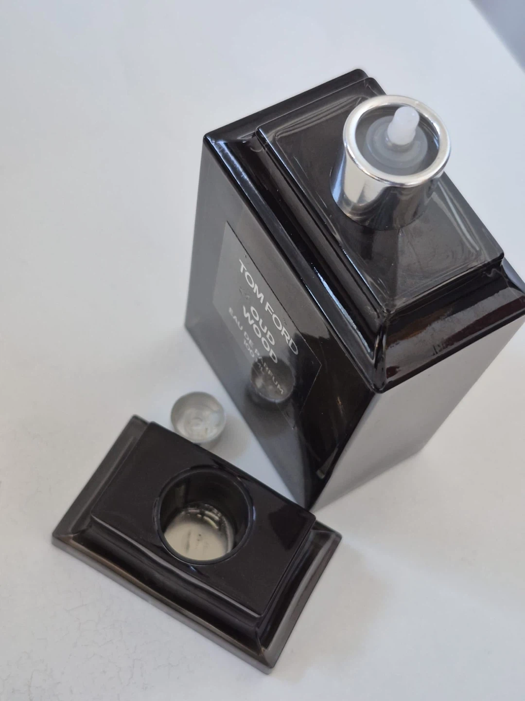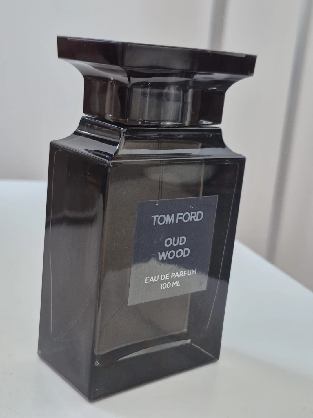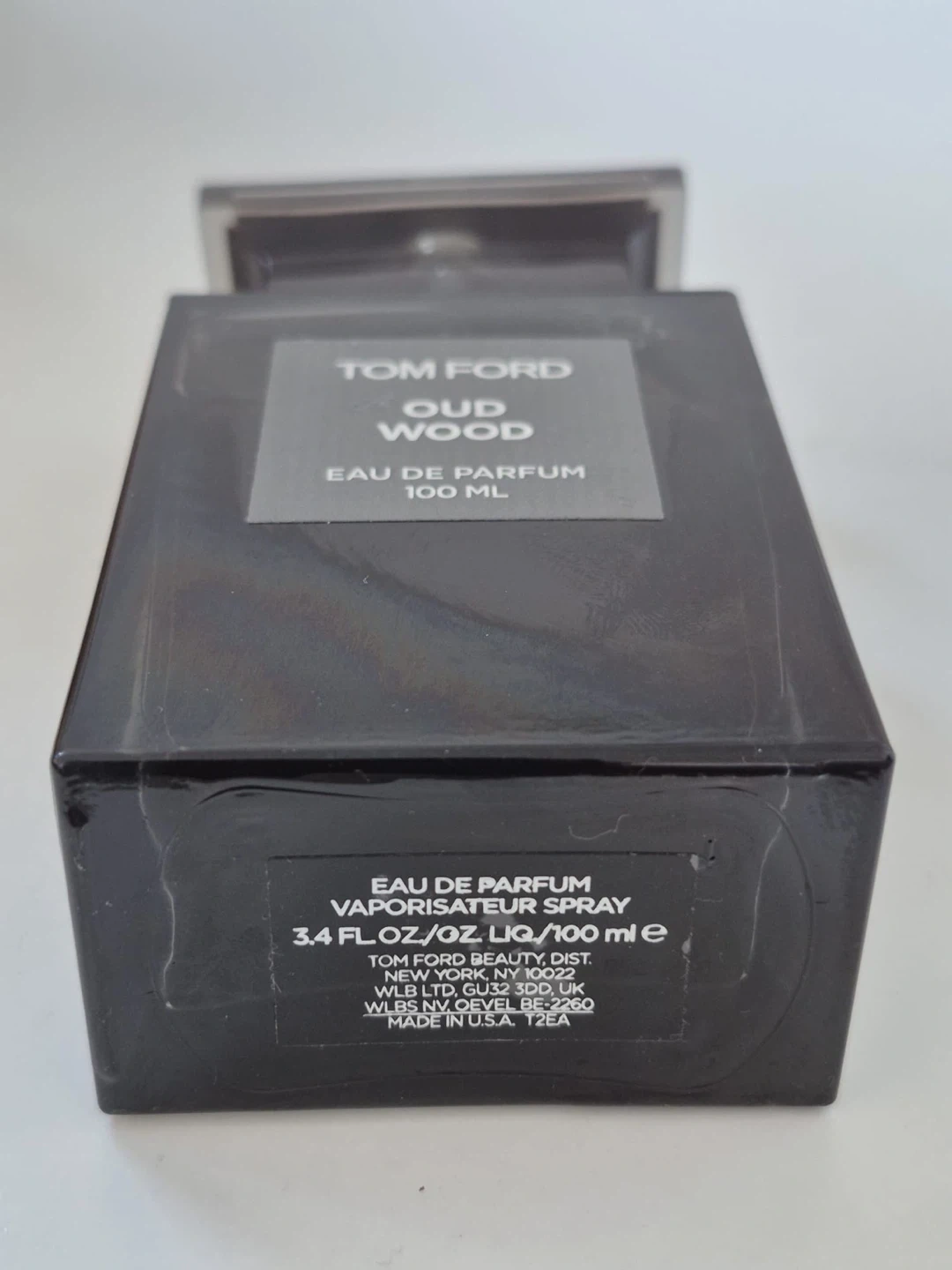 Tom Ford Oud Wood Eau de Parfum for men and women. This luxurious fragrance comes in a 100 mL spray bottle. It's a captivating scent perfect for any occasion.