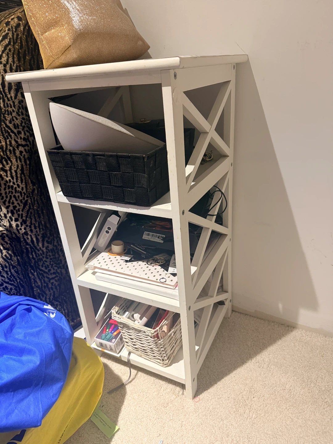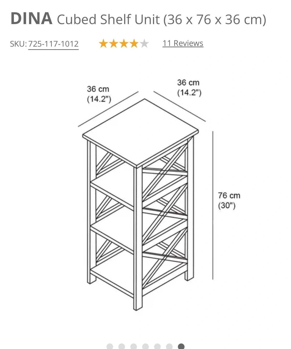 This DINA cubed shelf unit is white and measures 36 cm by 76 cm by 36 cm. It's a compact shelving solution perfect for smaller spaces. Offers three levels of storage.