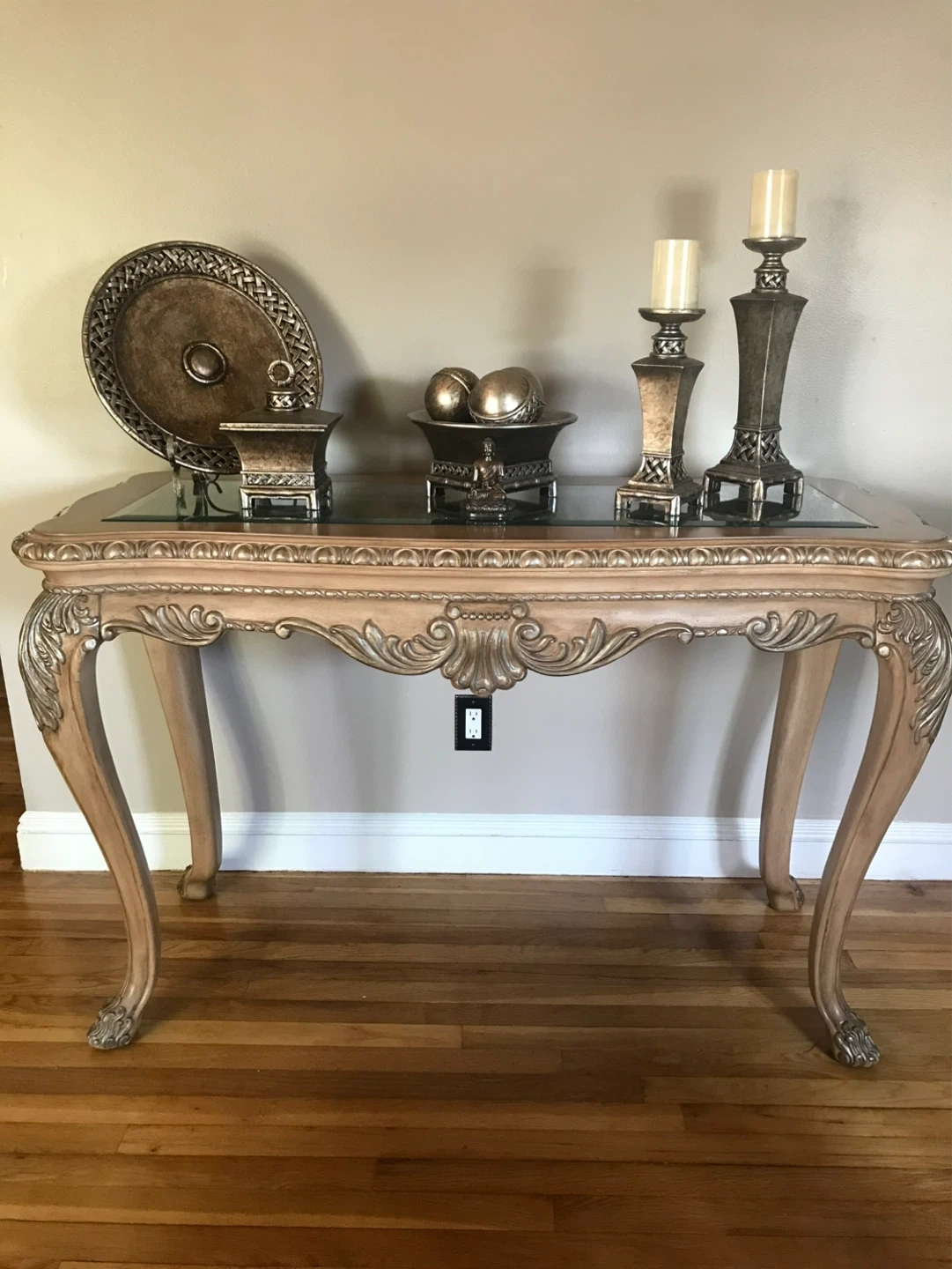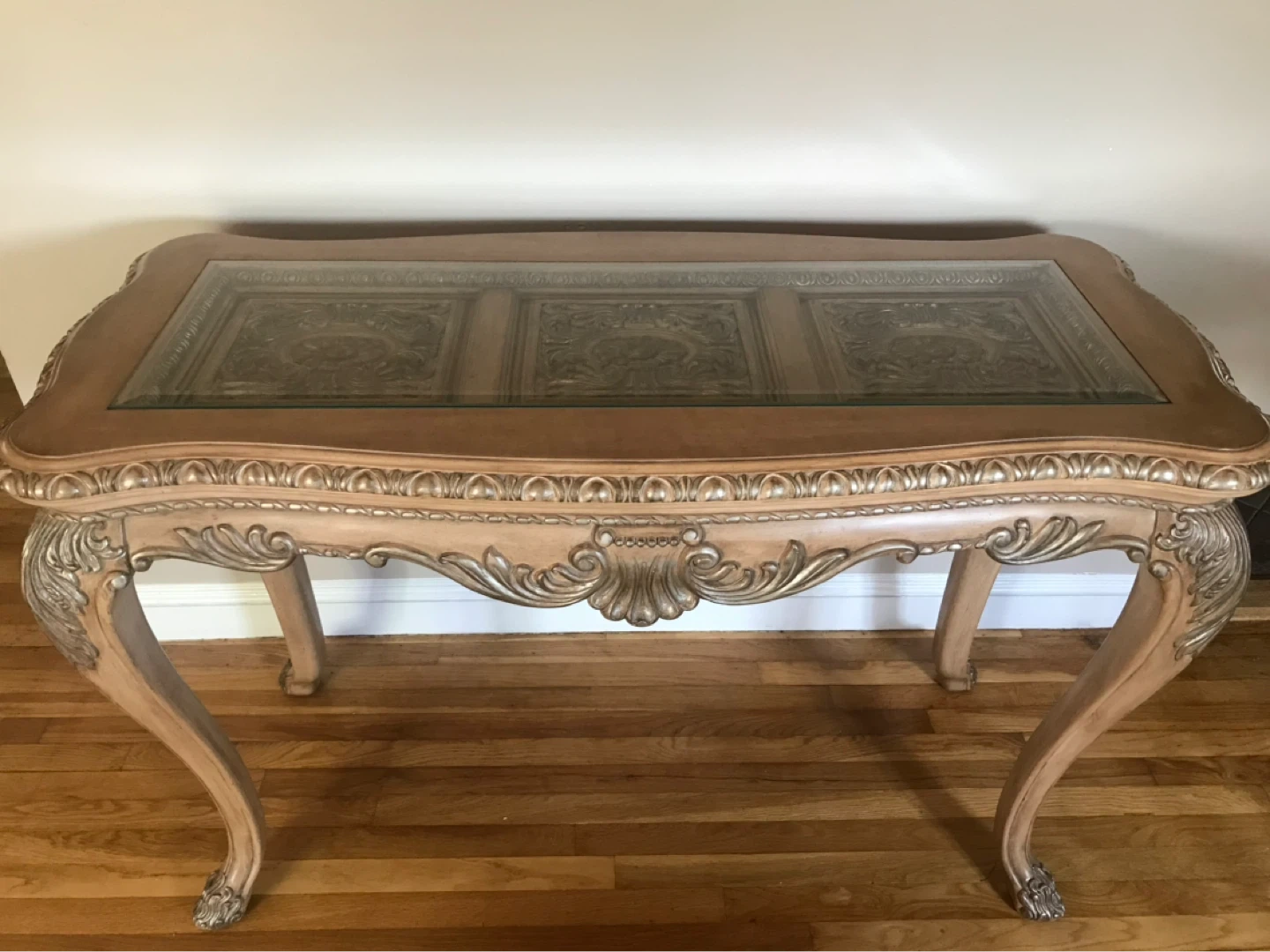 Ornate Console Table with Glass Top