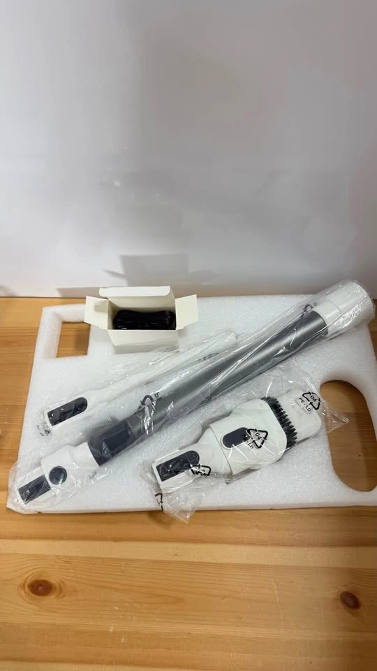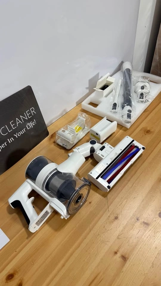 New cordless vacuum cleaner with a powerful 80,000PRM motor. Lightweight and easy to use for daily home cleaning. Features 2 adjustable power modes, a 2200mAh rechargeable battery, and up to 35 minutes of runtime. Cordless and lightweight design in a modern Stone White / Gray color. Perfect for condos, apartments, hardwood floors, and carpets.