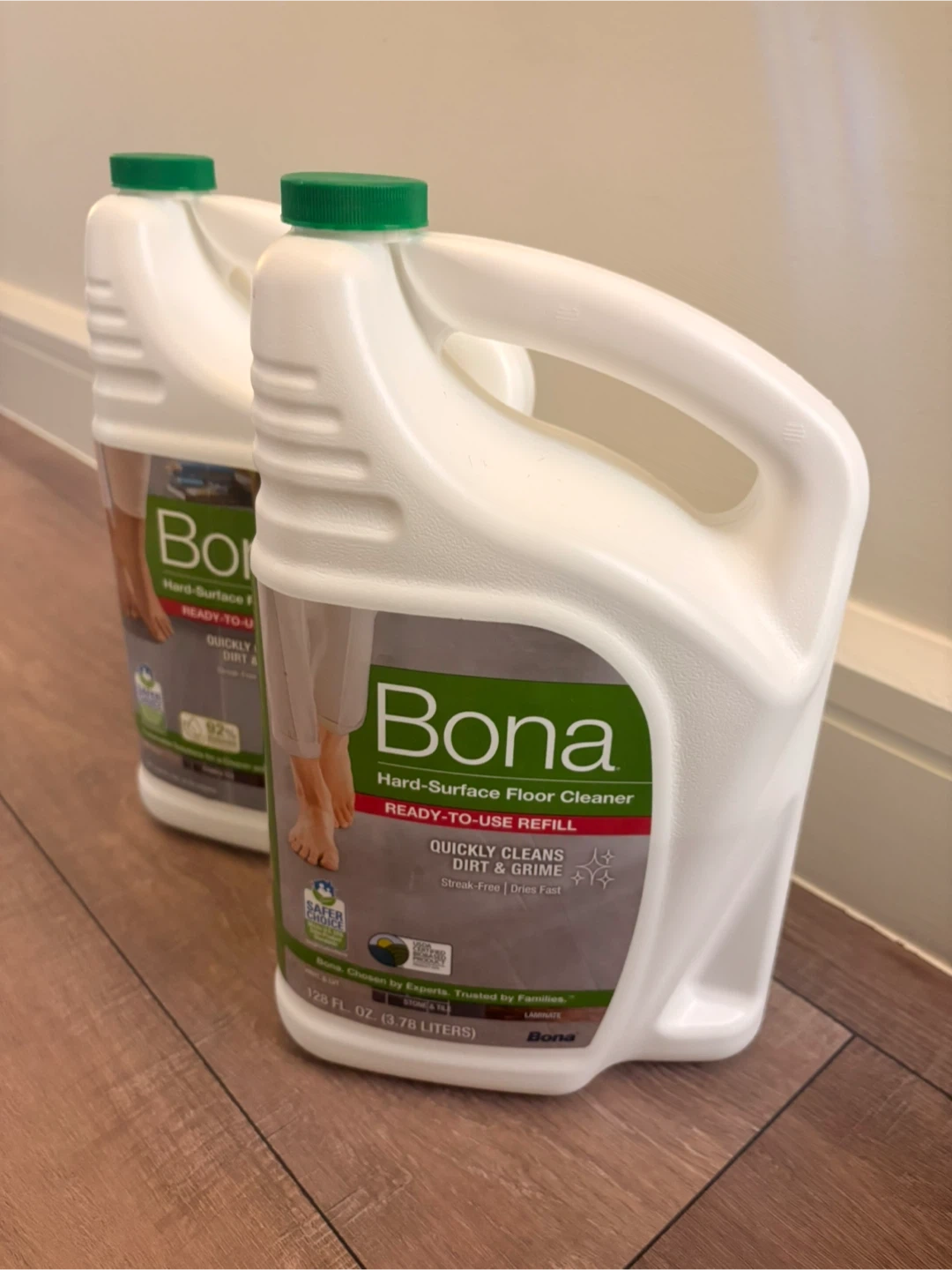 These are Bona Hard-Surface Floor Cleaner, ready-to-use refill. It quickly cleans dirt & grime, leaving surfaces streak-free and fast-drying. Each bottle contains 128 fl oz (3.78 liters).