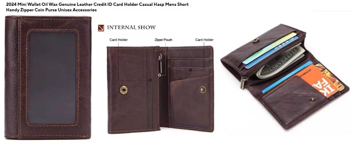 Genuine Cow Leather; Coffee; Zipper Pocket; RFID Blocking