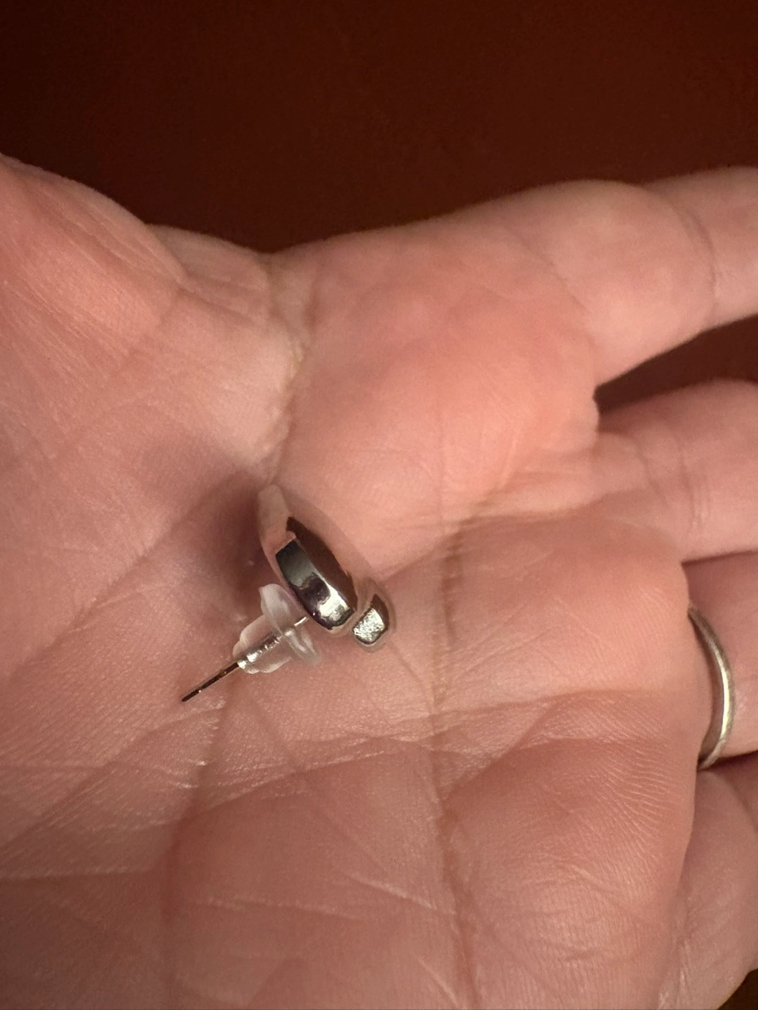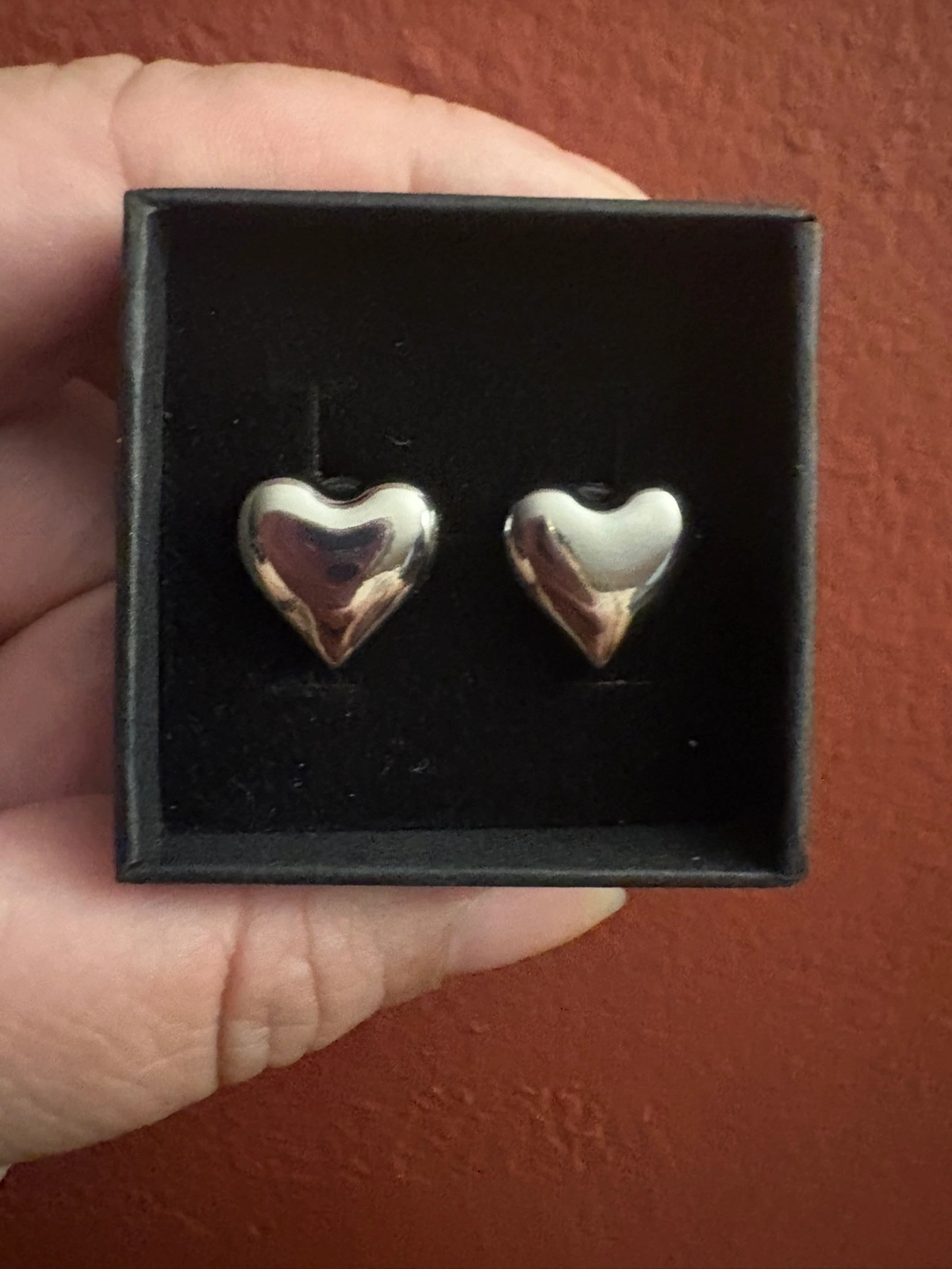 Pair of 14K Gold Stainless steel silver heart-shaped stud earrings. Shiny, smooth finish. Post-back closure. Perfect for everyday wear.Hypoallergenic non fade non tarnish water proof comes with box and cleaning cloth NEW
