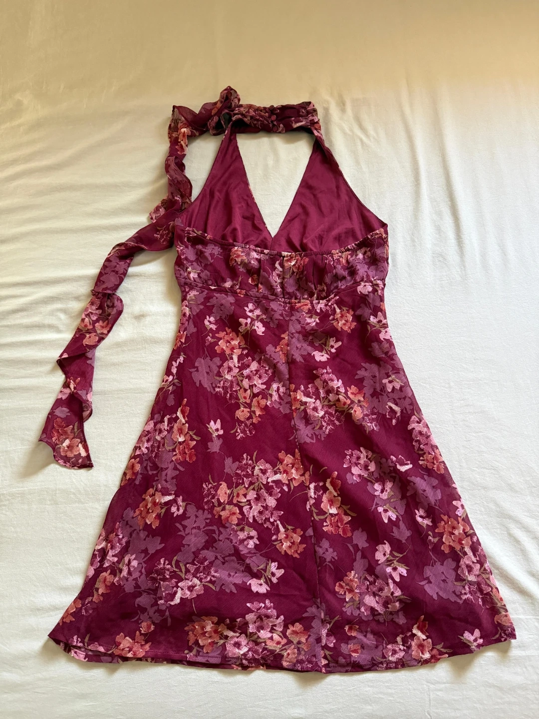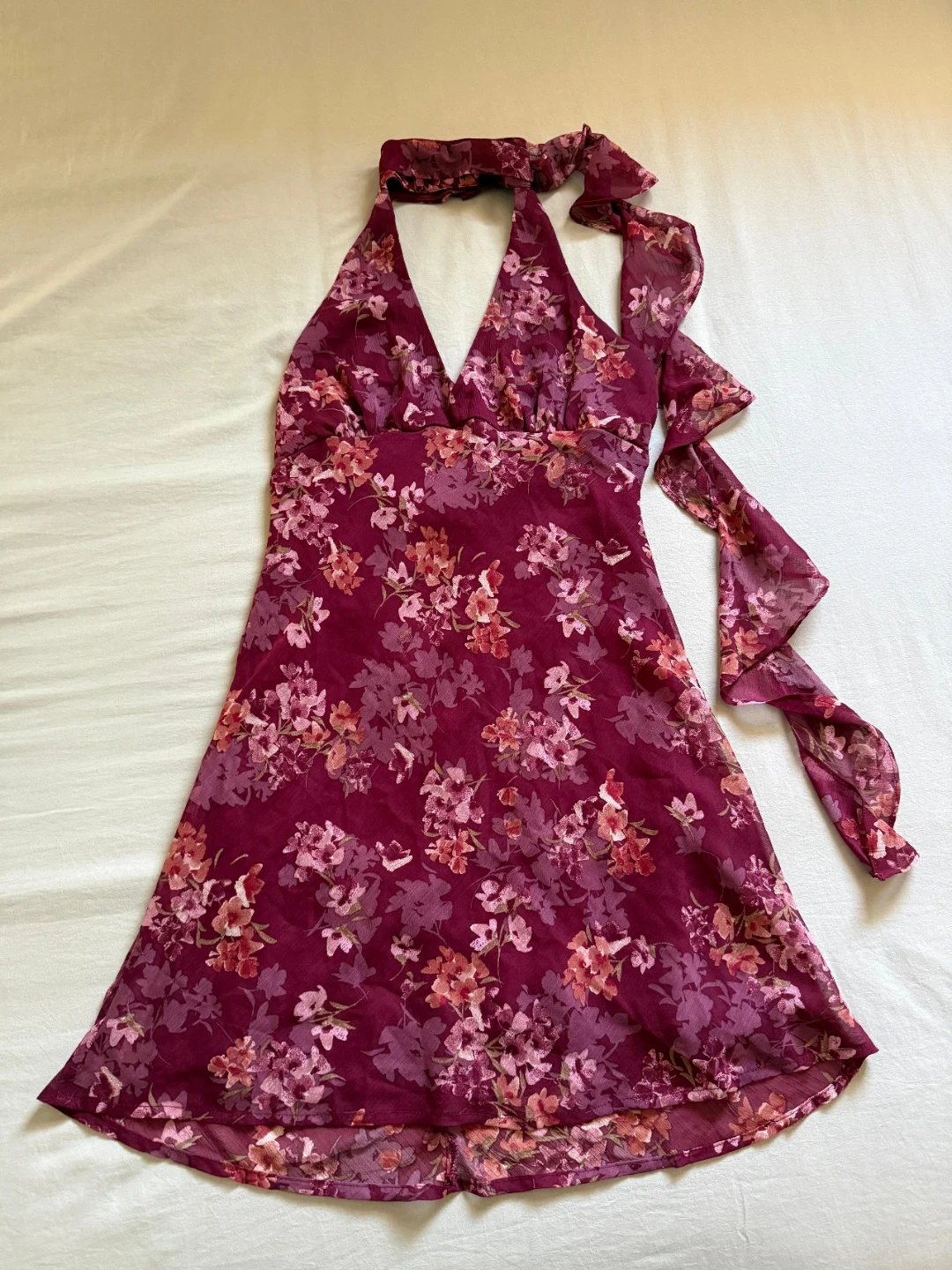 Selling a cute floral halter dress! It has a beautiful floral pattern and a flattering halter neckline. Perfect for a summer day or a special occasion