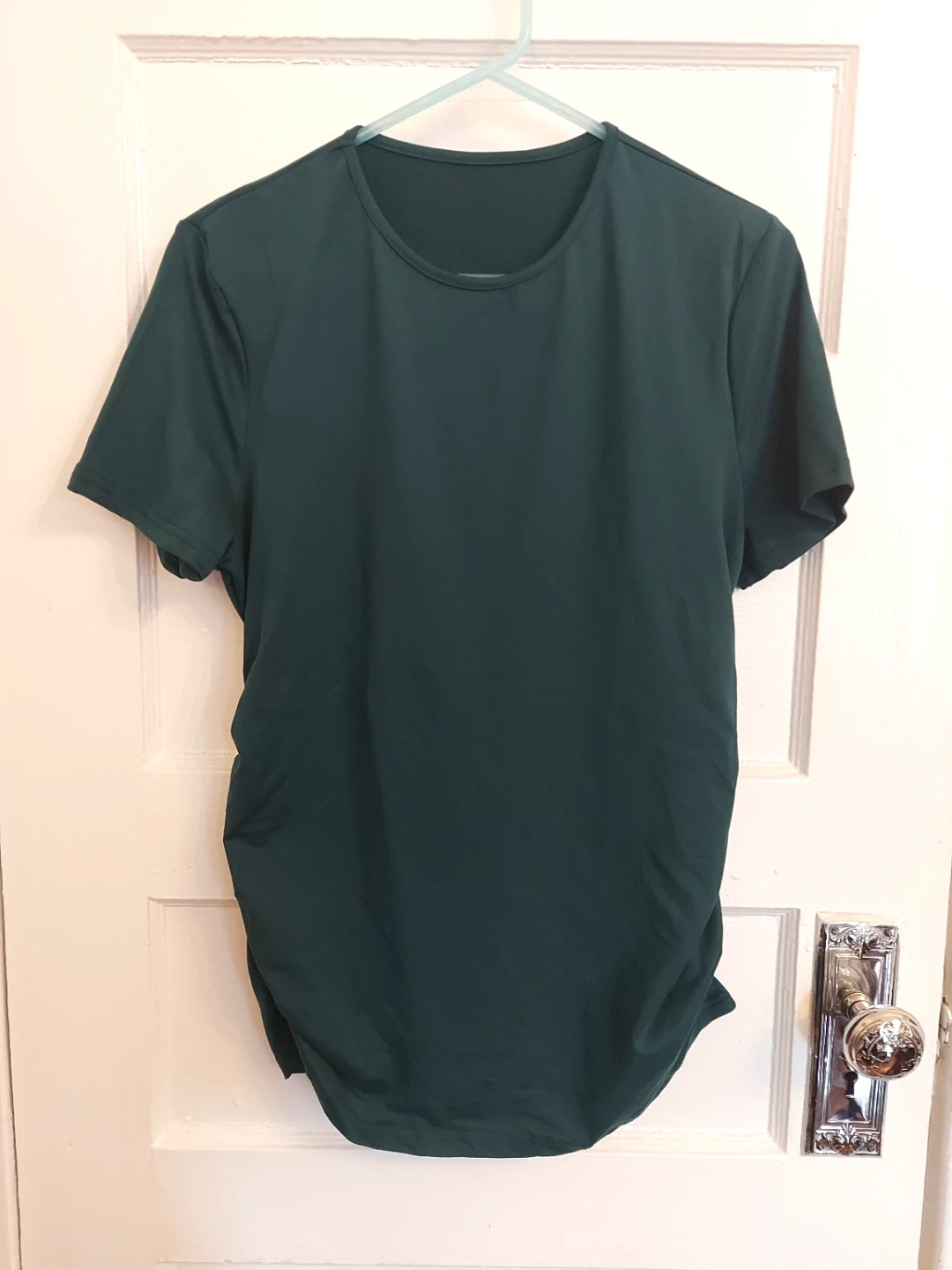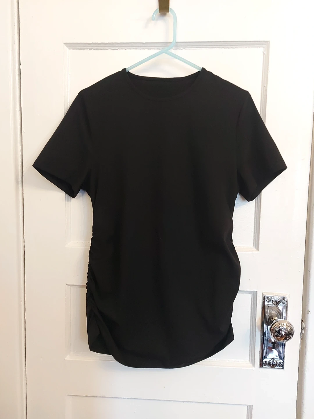 Two SHEIN maternity t-shirts in size L. One black, one green. Ruched sides to accommodate a growing belly. New and never worn except to try on. The neck is just a little too tight for my comfort. Take both for $10.