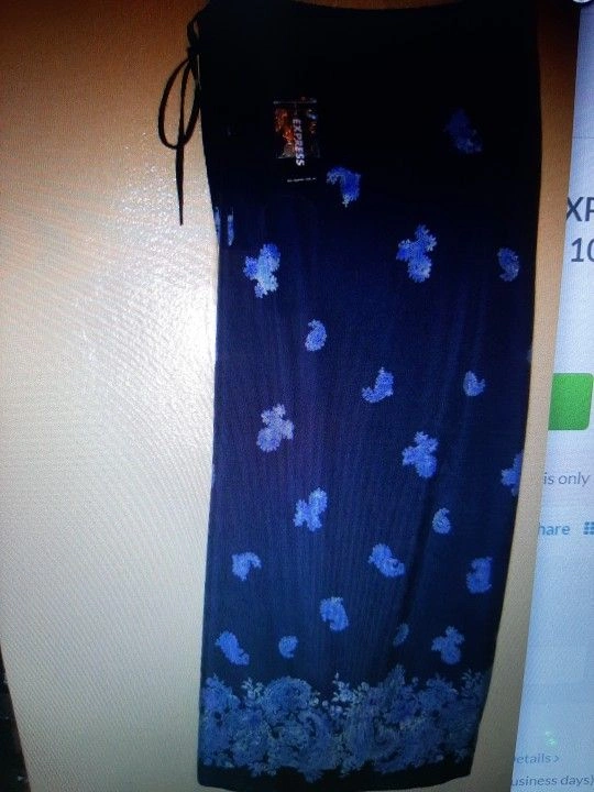 NEW $49.50 EXPRESS LONG WRAP SKIRT- 4 6 8 10 Floral Blue