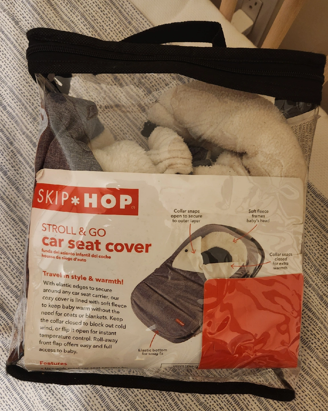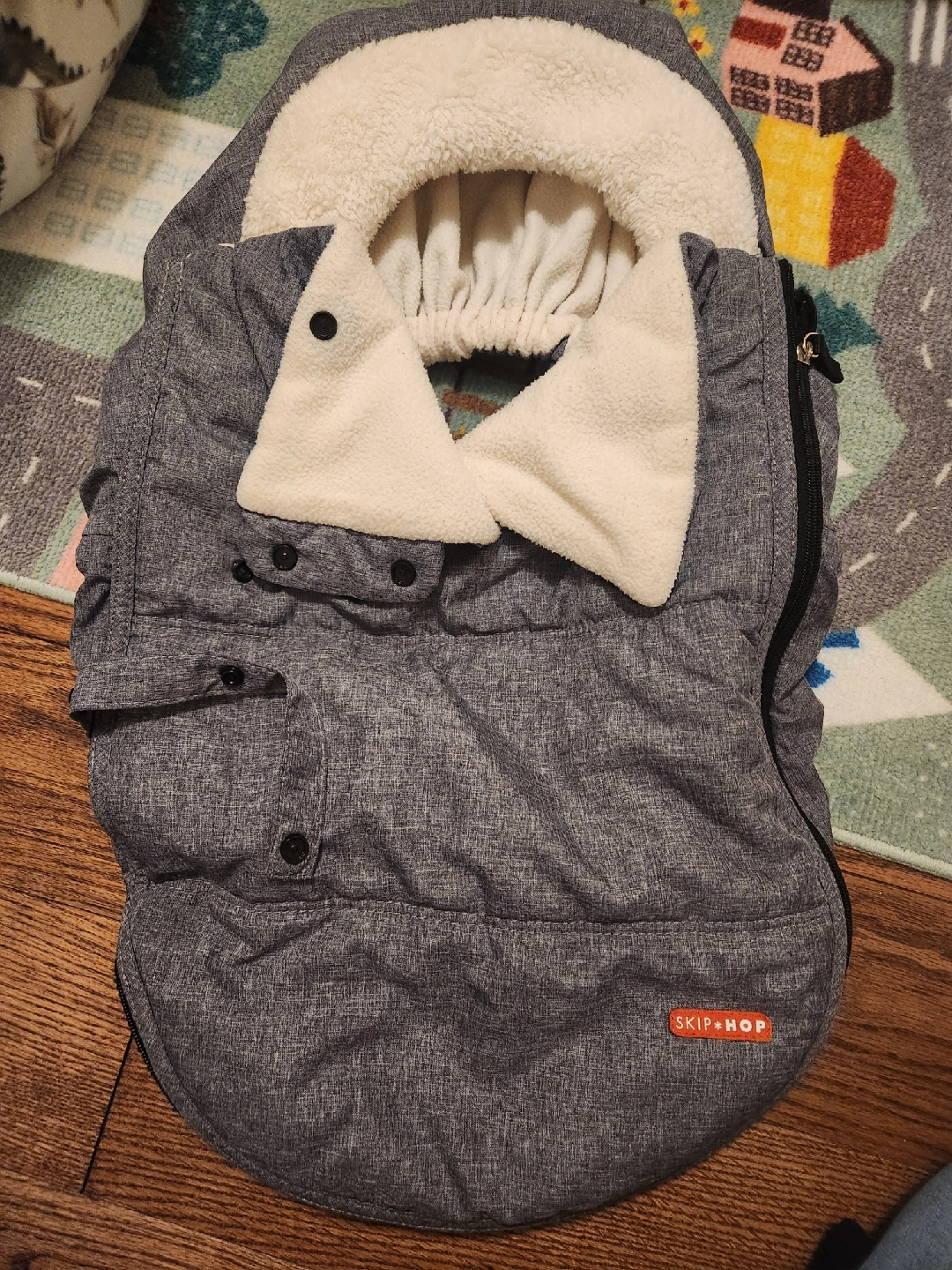 Keep your little one cozy with this Skip Hop Stroll & Go car seat cover! It features elastic edges to secure around any car seat carrier and is lined with soft fleece to keep baby warm without the need for coats or blankets. The collar can be closed to block out cold wind, or flipped open for instant temperature control. The roll-away front flap offers easy and full access to baby.