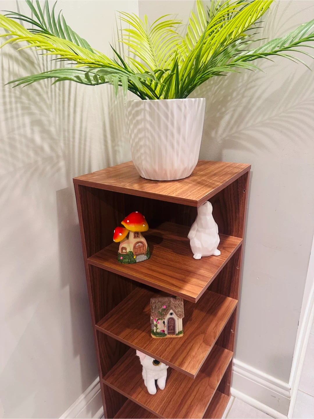 Corner Shelf Unit with Faux Plant