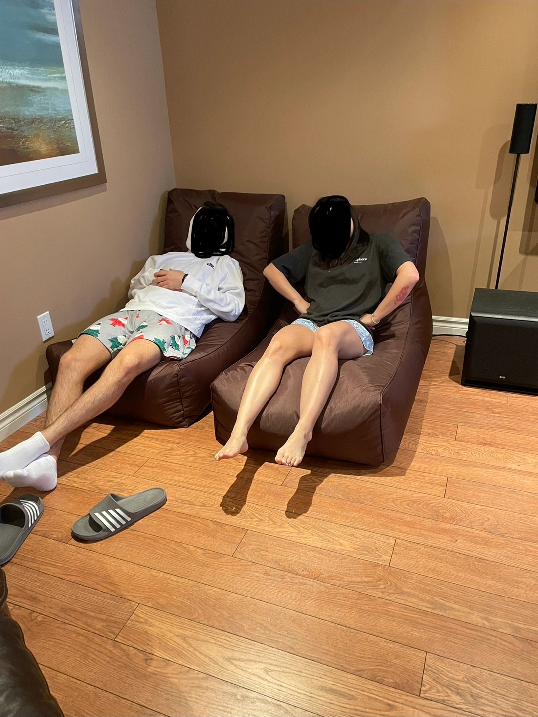 Brown bean bag chairs. They are cozy and relaxing. Perfect for unwinding after a long day.