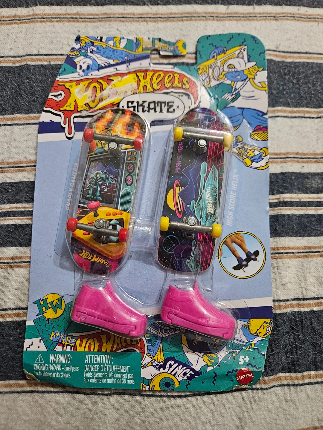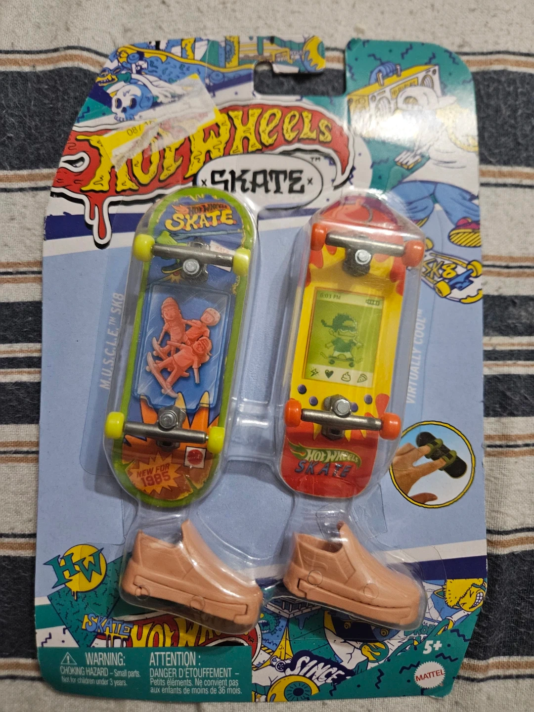 This set includes two Hot Wheels skate fingerboards and two pairs of tiny shoes. These are great for collecting or for playing with fingerboard tricks! The skateboards come in a blister pack.