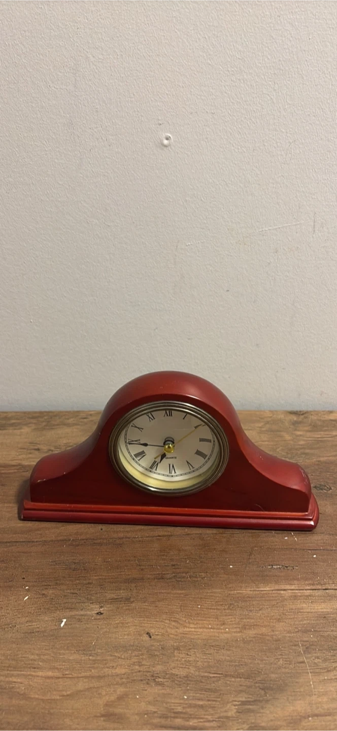 Vintage Red Mantel Clock with Roman Numerals