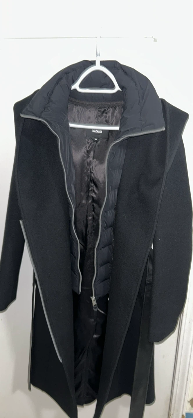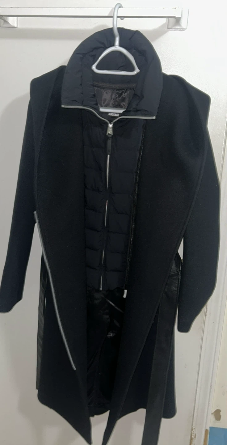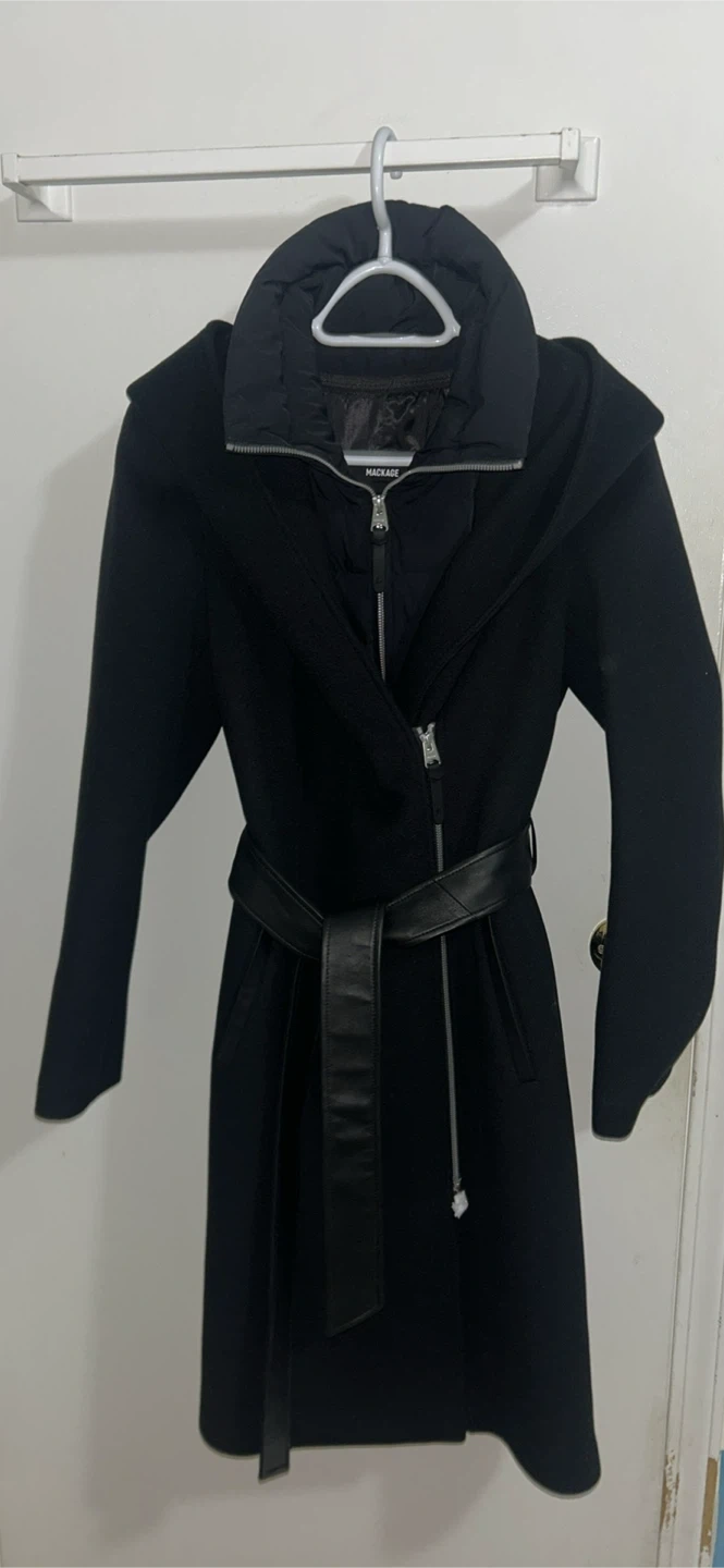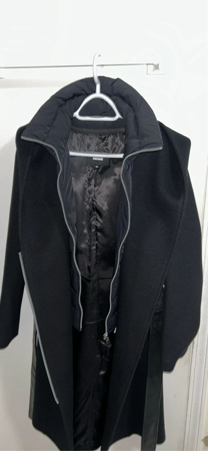 Selling a brand new never worn tags still on, Mackage Shia-SLB 2-in-1 double-face wool coat with a removable bib. This stylish coat is perfect for staying warm and looking great. It's in excellent condition and ready for a new owner!