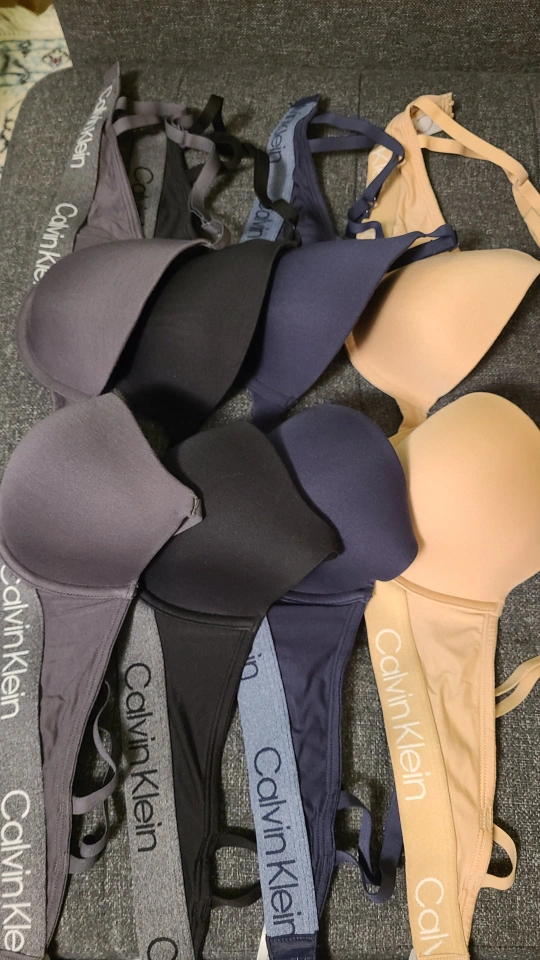 A collection of Calvin Klein bras featuring the signature branded elastic waistband. Available in a variety of colours including grey, navy, black, and nude. These are comfortable and stylish everyday bras.
