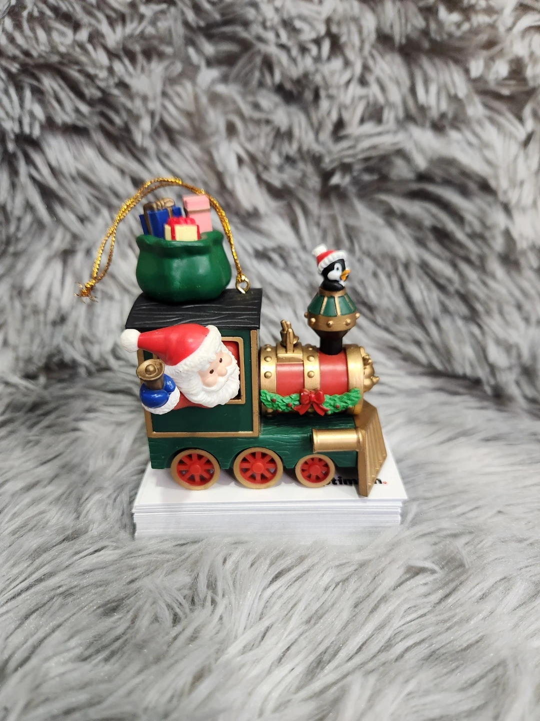 Christmas Train Ornament with Santa and Penguin