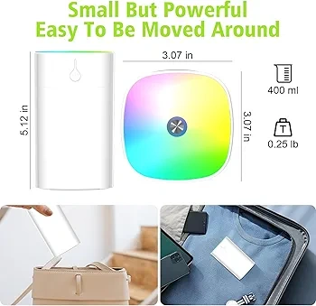 This mini humidifier is perfect for different occasions, whether you're getting up, working, reading a book, doing yoga, or sleeping! It also functions as a night light with a 7 color automatic cycle. It is small but powerful and easy to move around. It holds 400 ml and provides fast humidification and long-lasting moisturizing