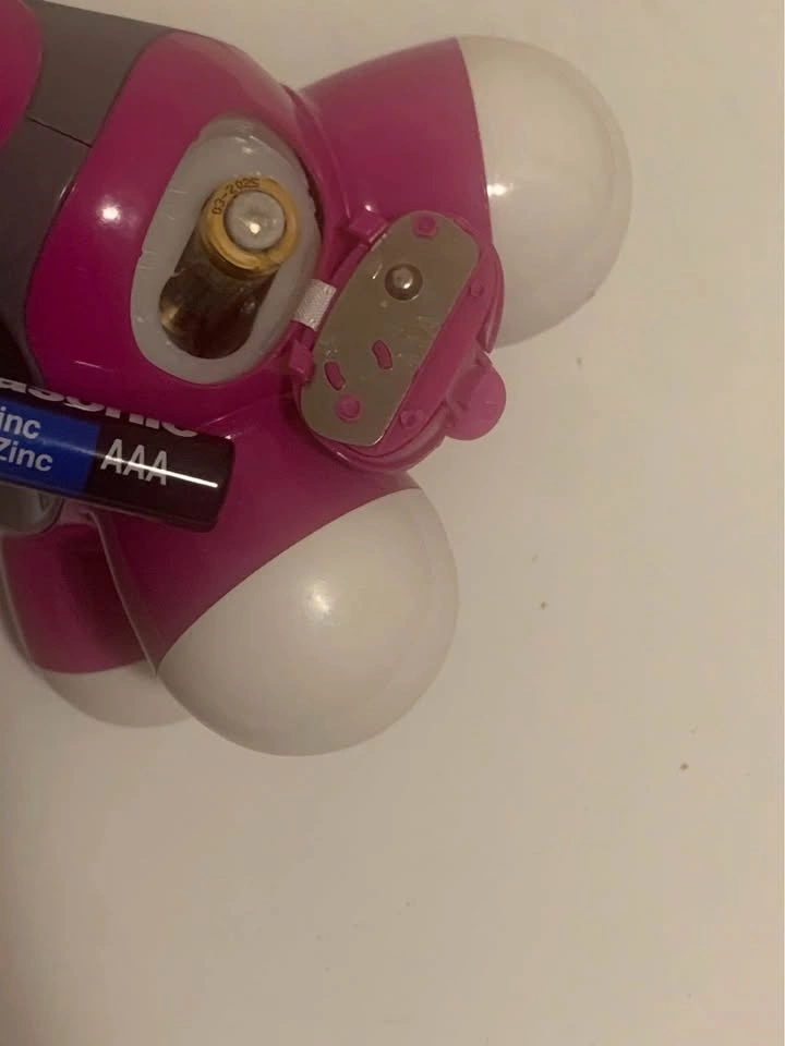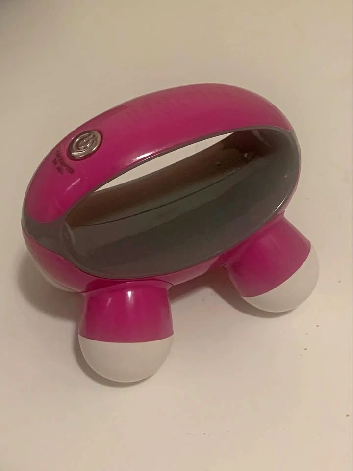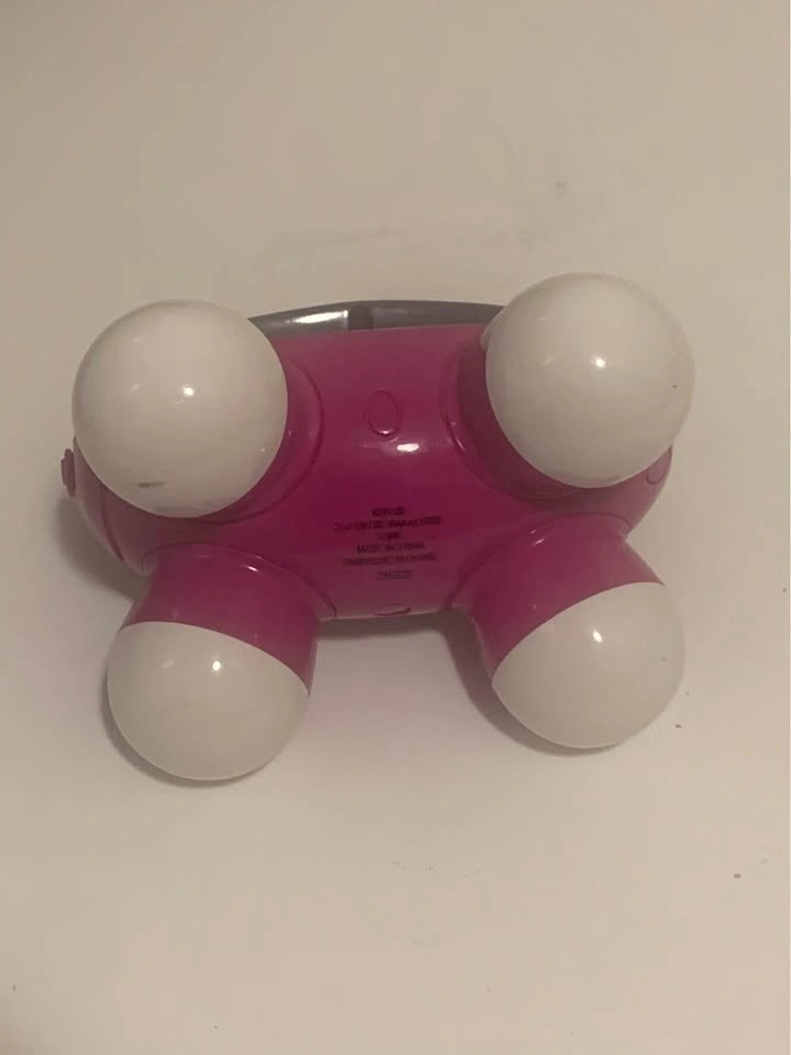 Compact and portable pink handheld massager with four massage balls. Battery operated (requires 2 AAA batteries). Great for a quick massage anytime!