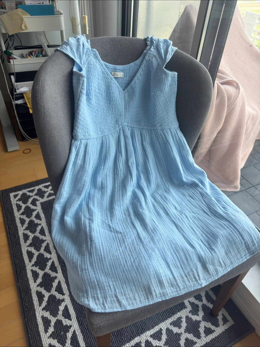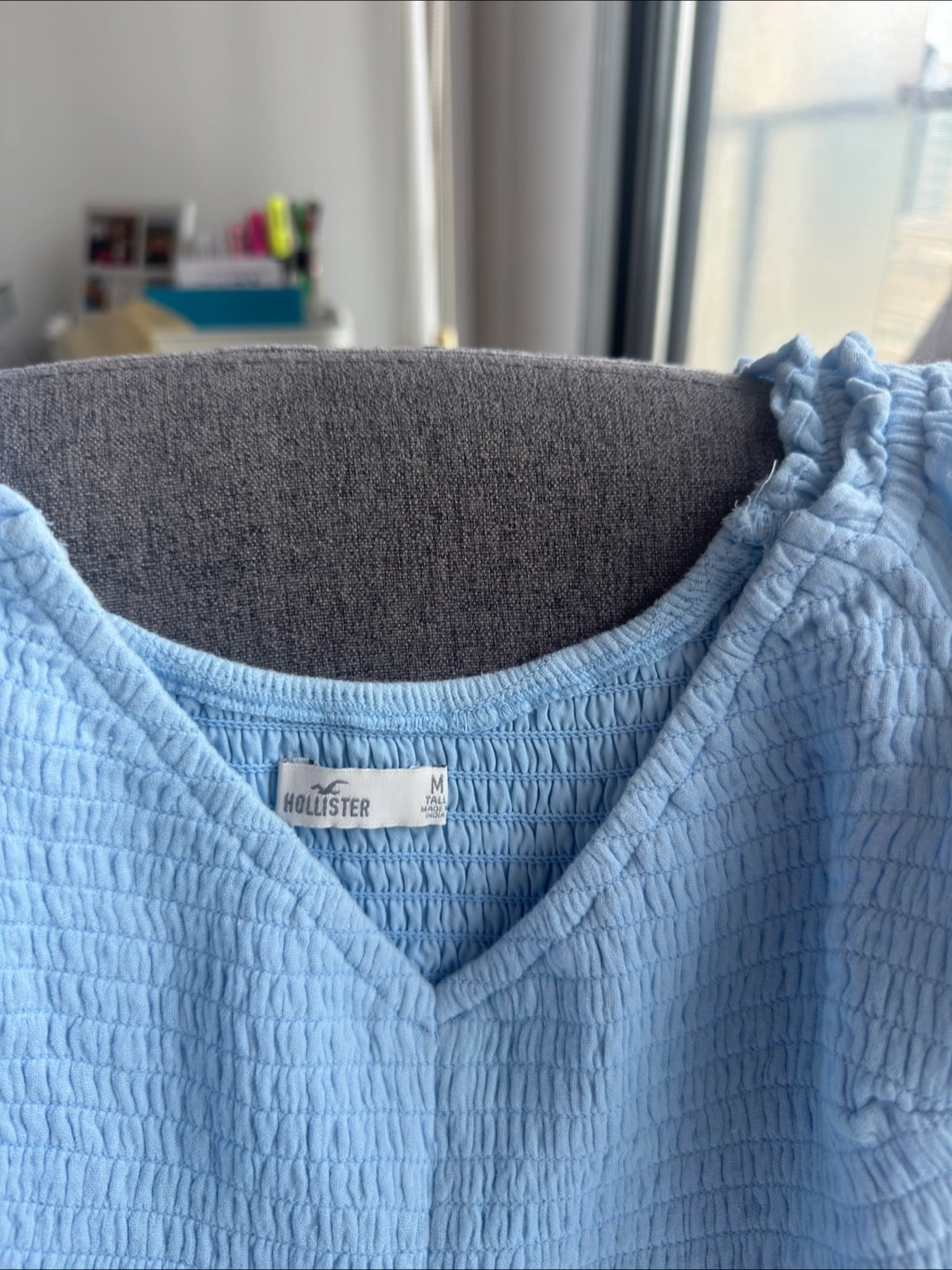 Here's a cute Hollister dress in a lovely light blue colour! It's a size M and perfect for a casual day out. The material is soft and comfy, making it a great addition to your wardrobe