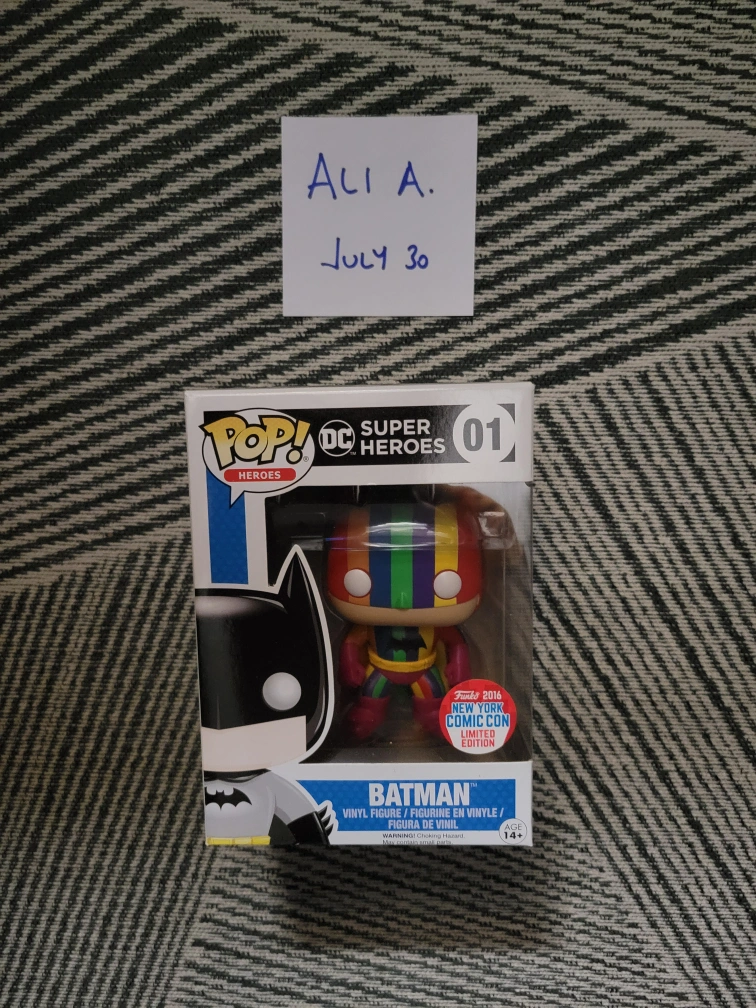 Selling a Funko Pop! DC Super Heroes Batman vinyl figure. It's number 01 in the series and is a 2016 New York Comic Con Limited Edition. Suitable for ages 14+