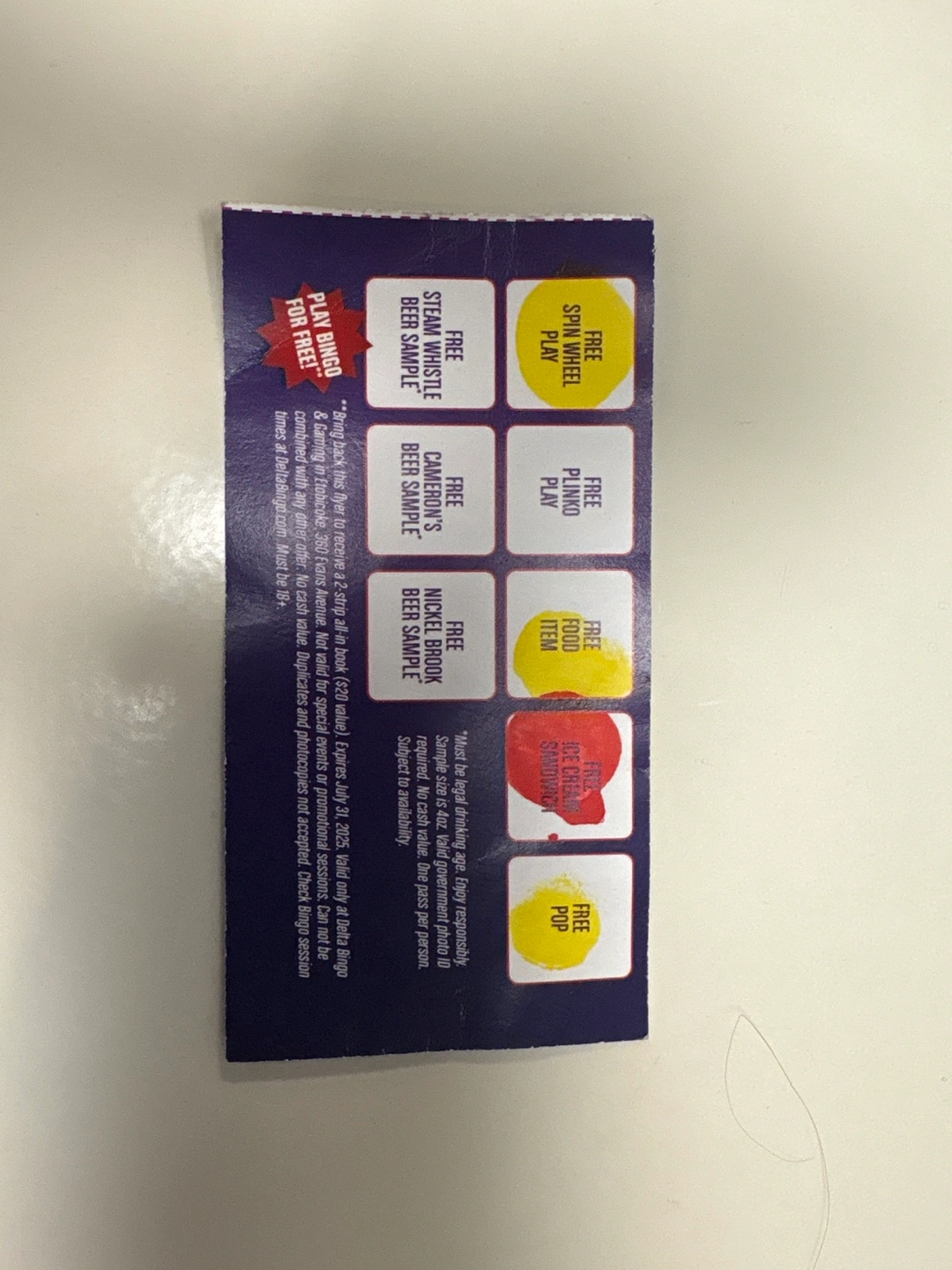 Expires July 31, 2025, so you've got to go this evening! Valid only at Delta Bingo & Gaming in Etobicoke, 360 Evans Avenue. Enjoy!