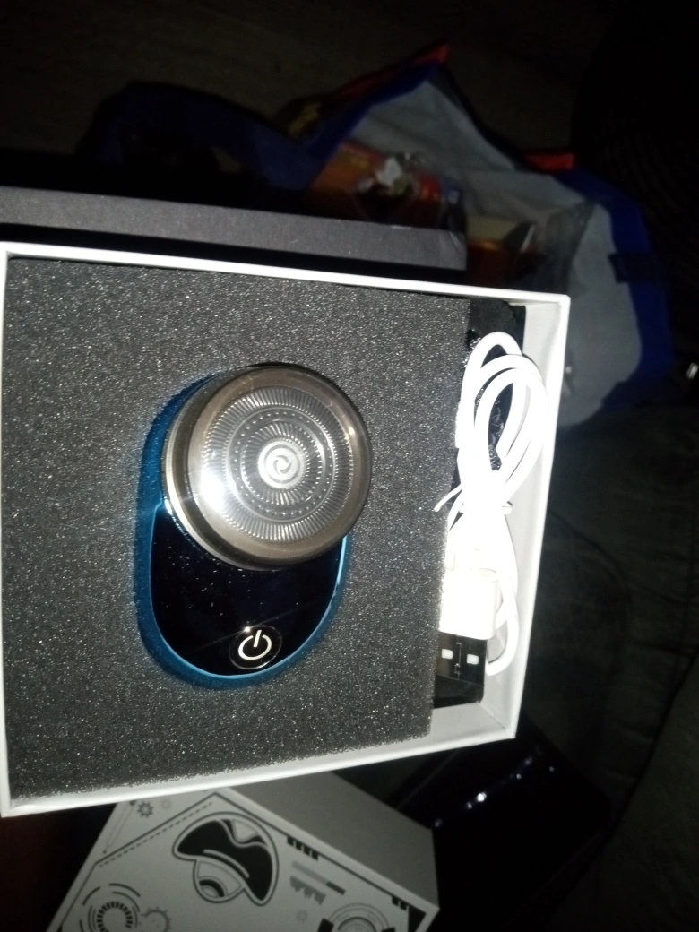 Selling a Electric shaver in blue! It comes with a charger. It's super compact and portable, perfect for travel or on-the-go touch-ups