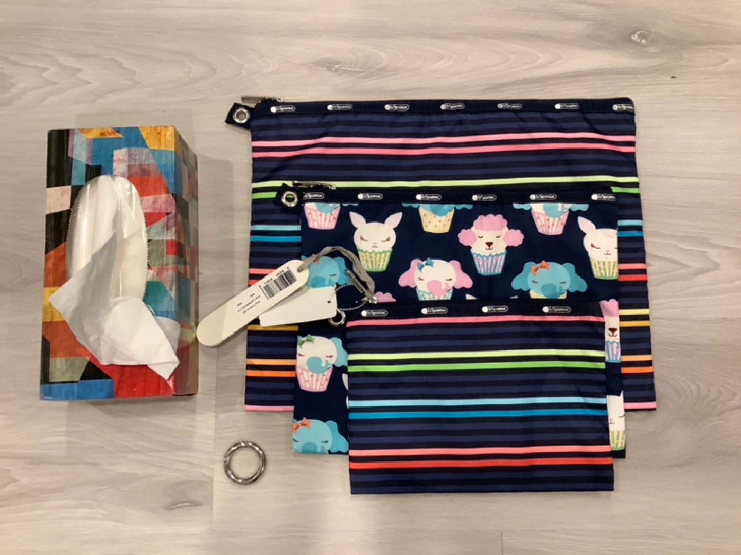 All made with sturdy Lesportsac fabric that is easily wiped clean and last forever !