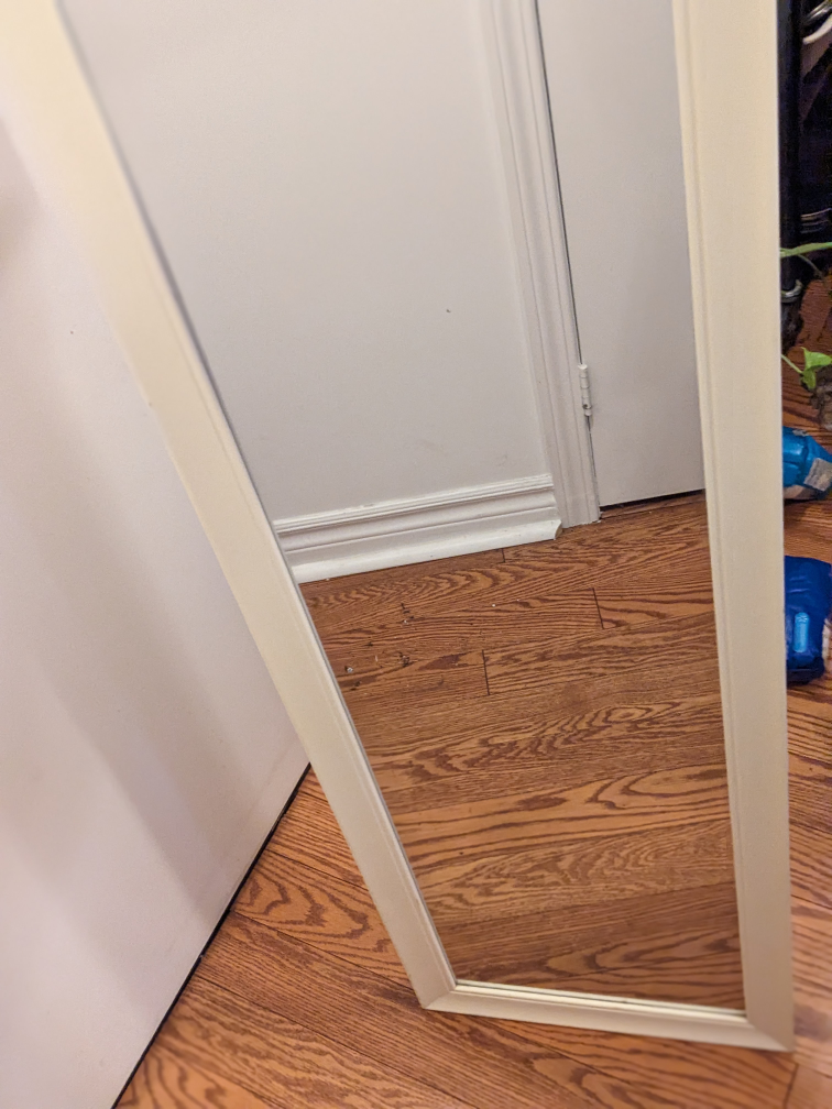 Selling a mirror. The dimensions are approximately 14 x 52.25 inches (36 x 133 cm). It was made in Canada!