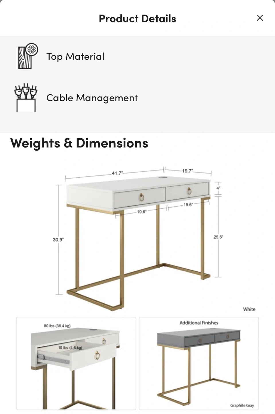 White & Gold Accent Desk