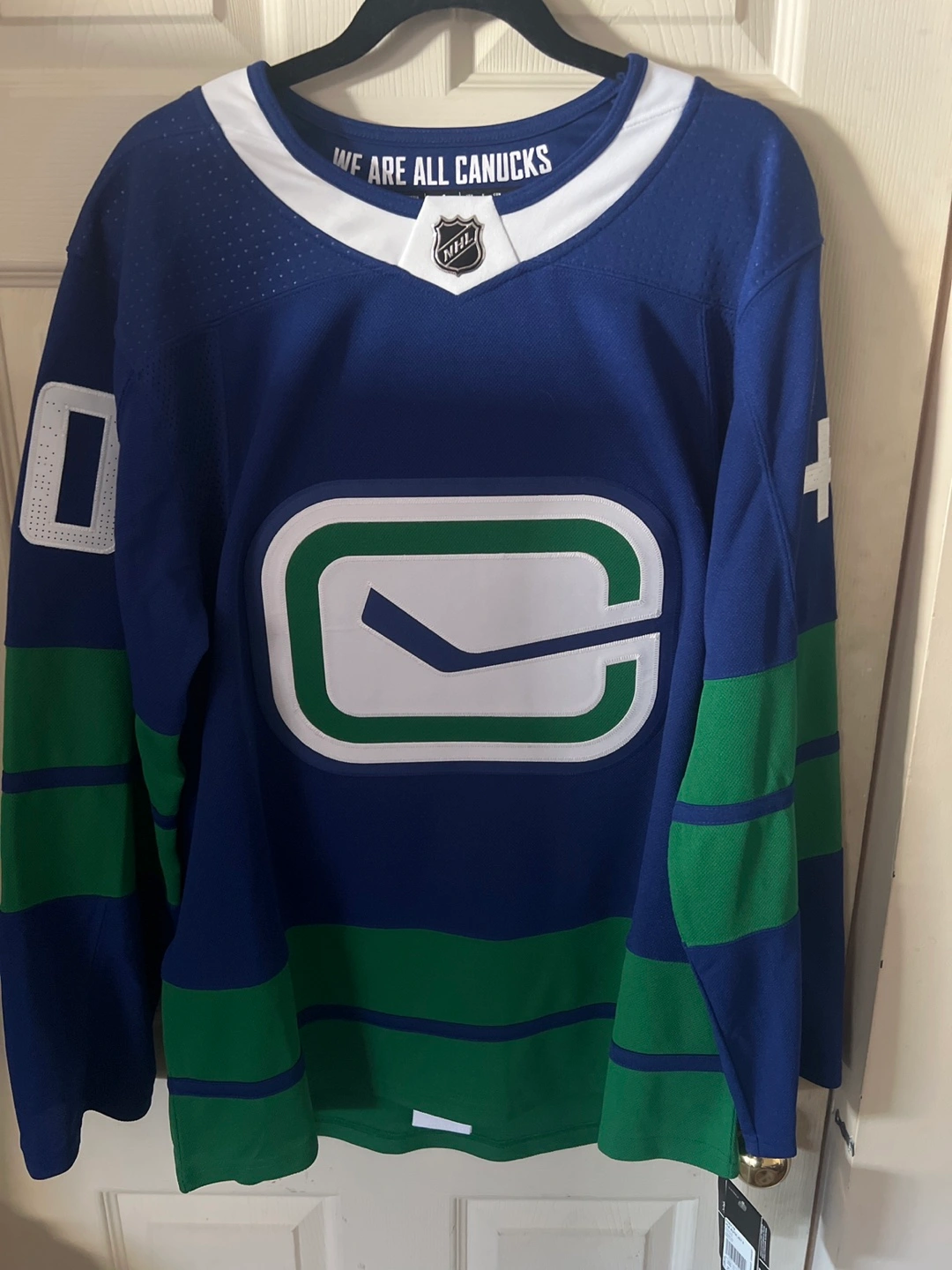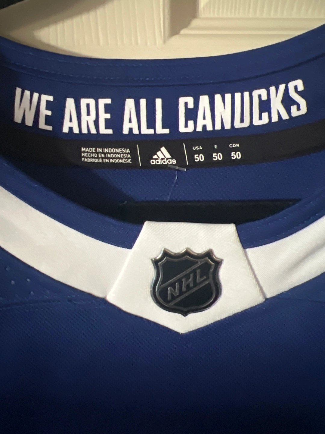 Selling an Adidas Vancouver Canucks Elias Pettersson jersey in size 50! It's in great condition and features the classic Canucks colours. The jersey also has the NHL logo on the front. Perfect for any Canucks fan!