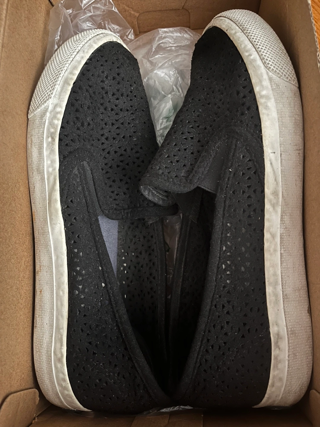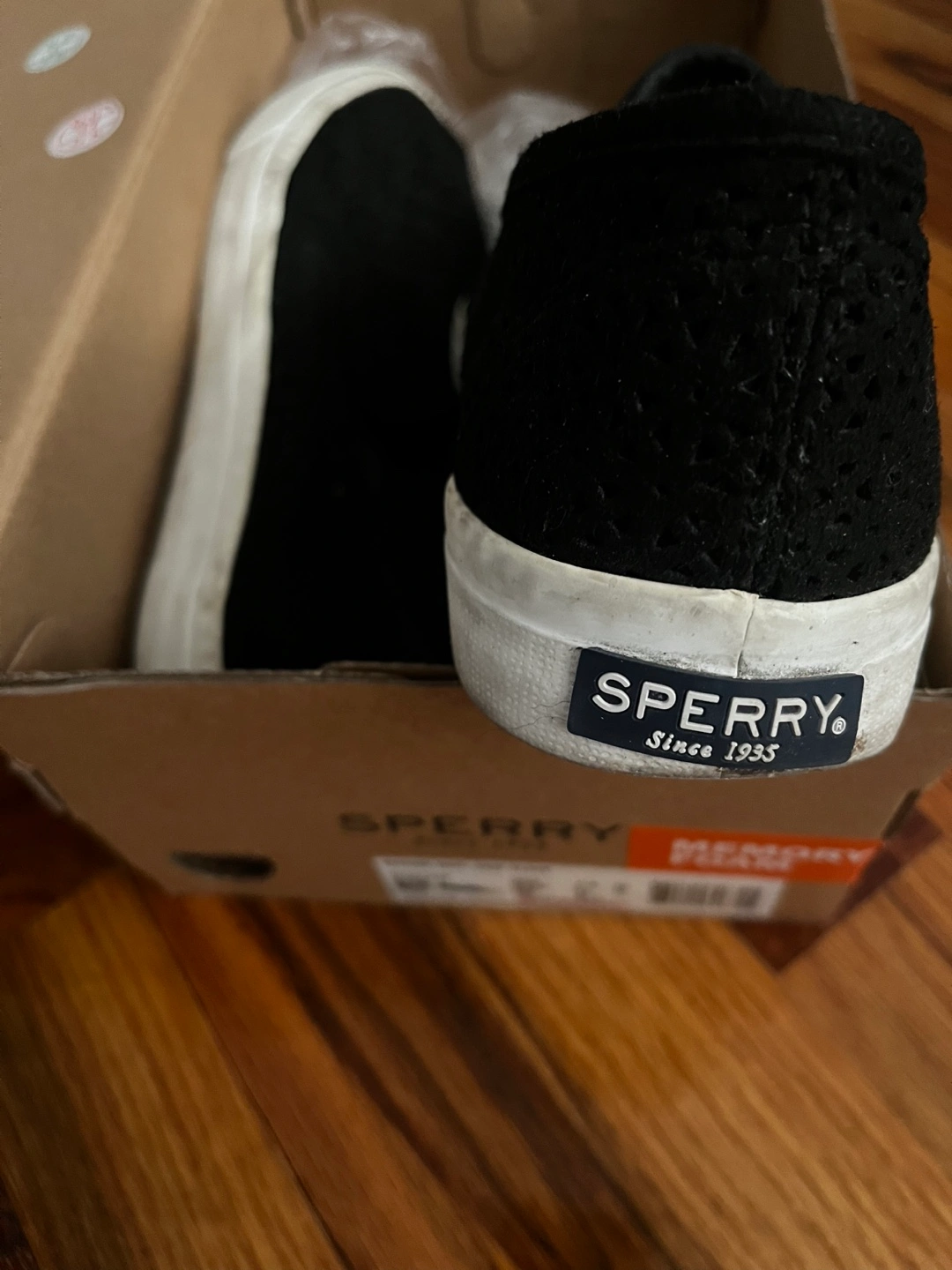 Free pickup- a pair of women's Sperry slip-on sneakers in black. They come with the original box. These shoes are perfect for casual wear and are in good condition!
