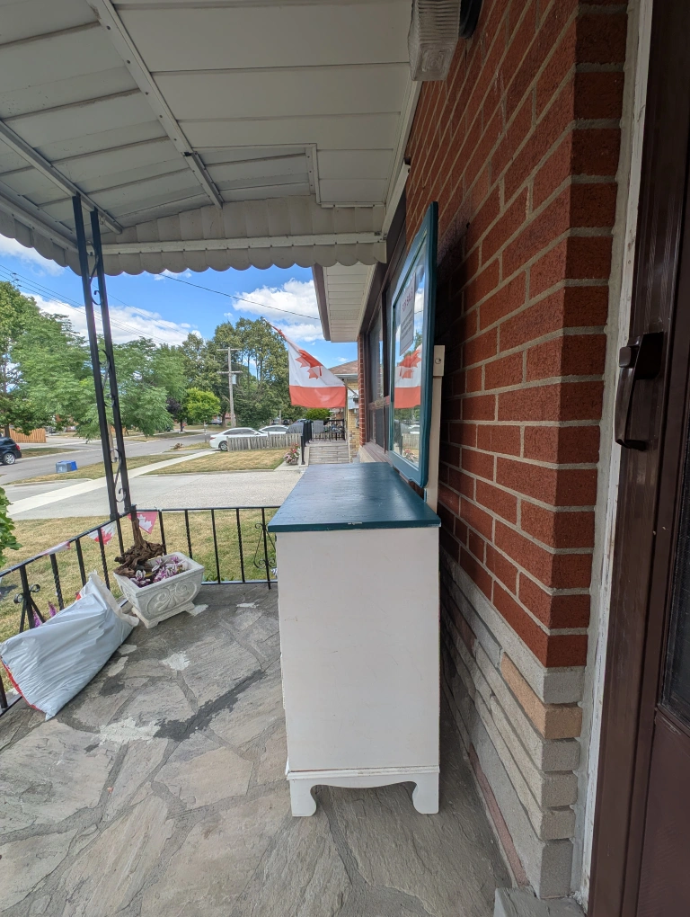 Selling a charming rustic dresser with a mirror. It's been hand-painted and has a unique, vintage look. The sign on the mirror says $100 OBO, so feel free to make an offer! I just put this out on the porch today.