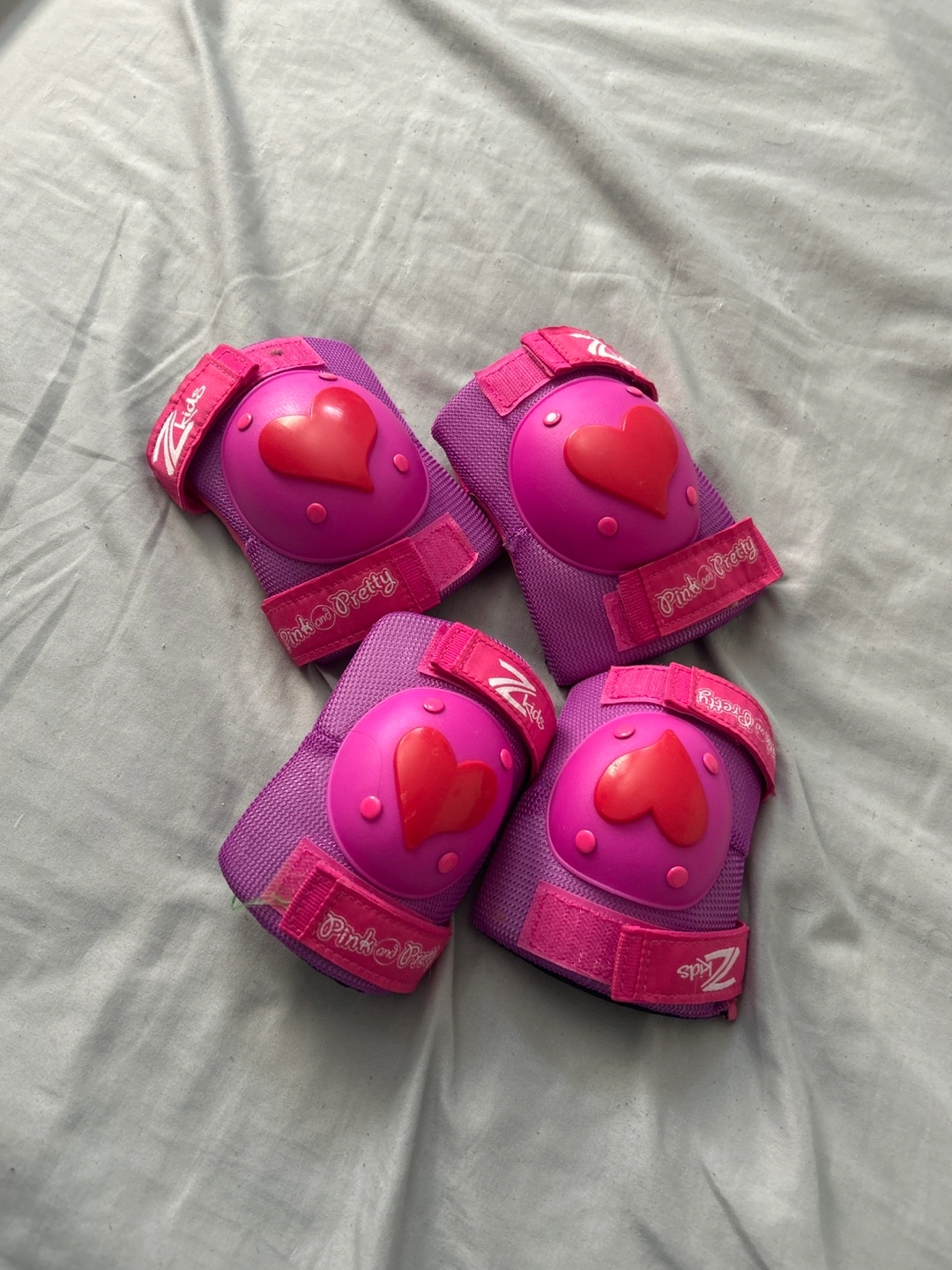 Selling a set of Pink Pretty brand protective gear for kids! This set includes knee and elbow pads, perfect for skating, biking, or any other activity where a little extra protection is needed. The pads are pink and purple with a cute heart design. They are in good condition and ready for a new owner