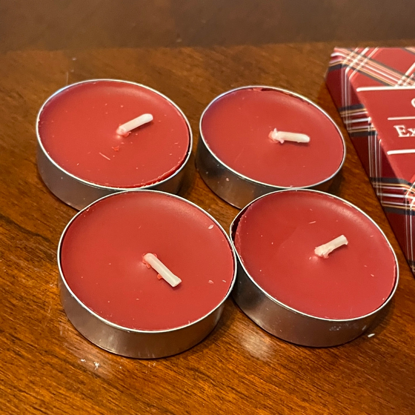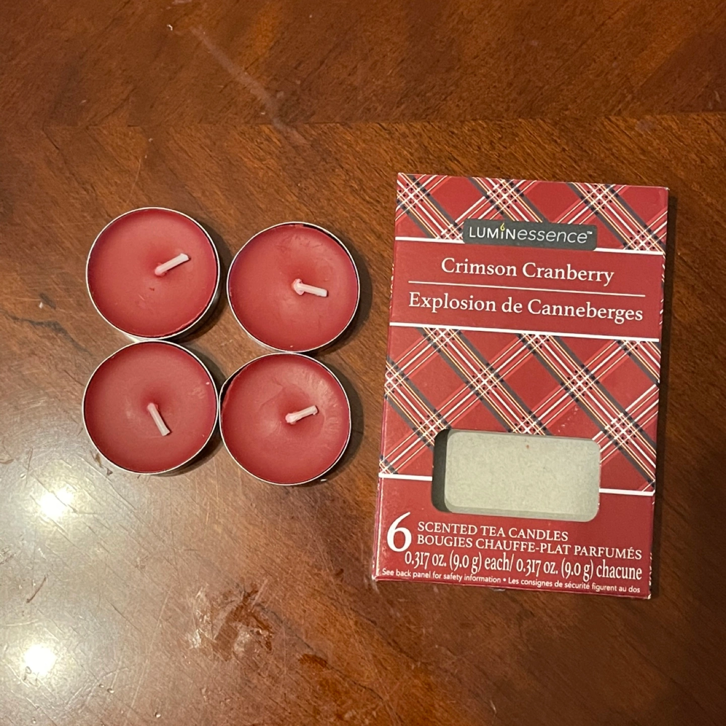 Luminessence Crimson Cranberry scented tea candles. The box includes 4 candles, each 0.317 oz (9.0 g). All like new