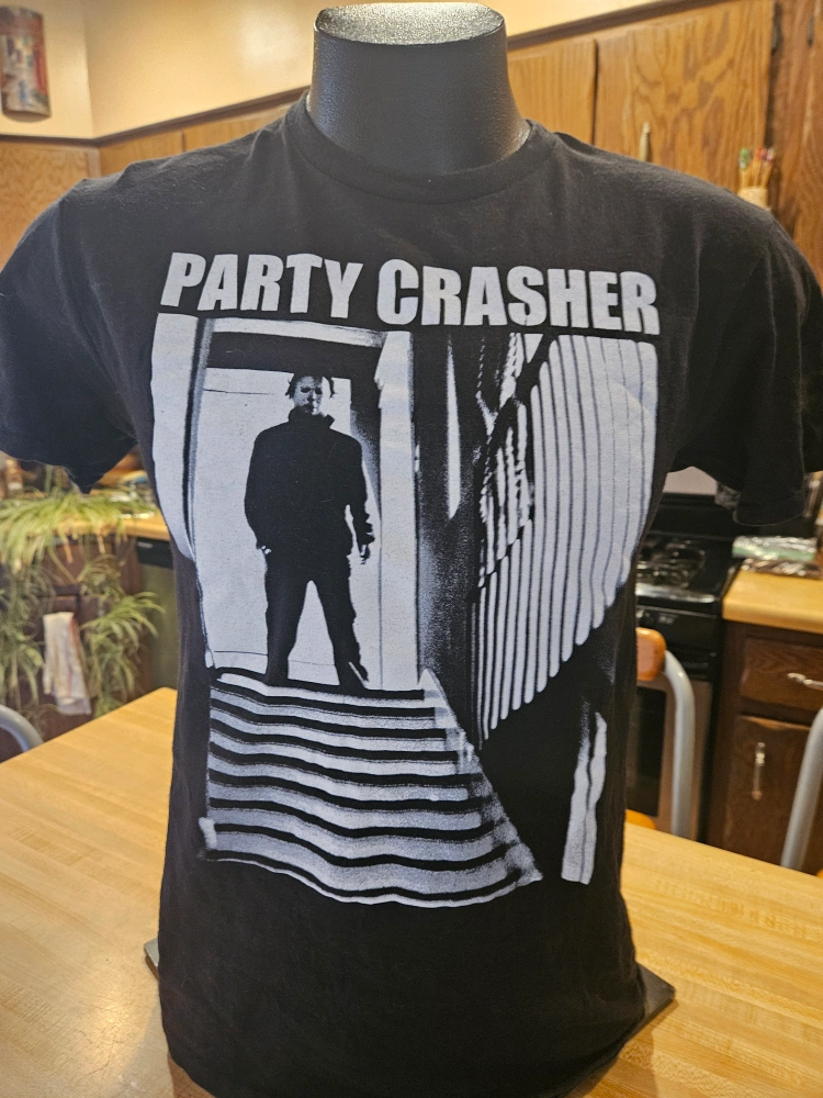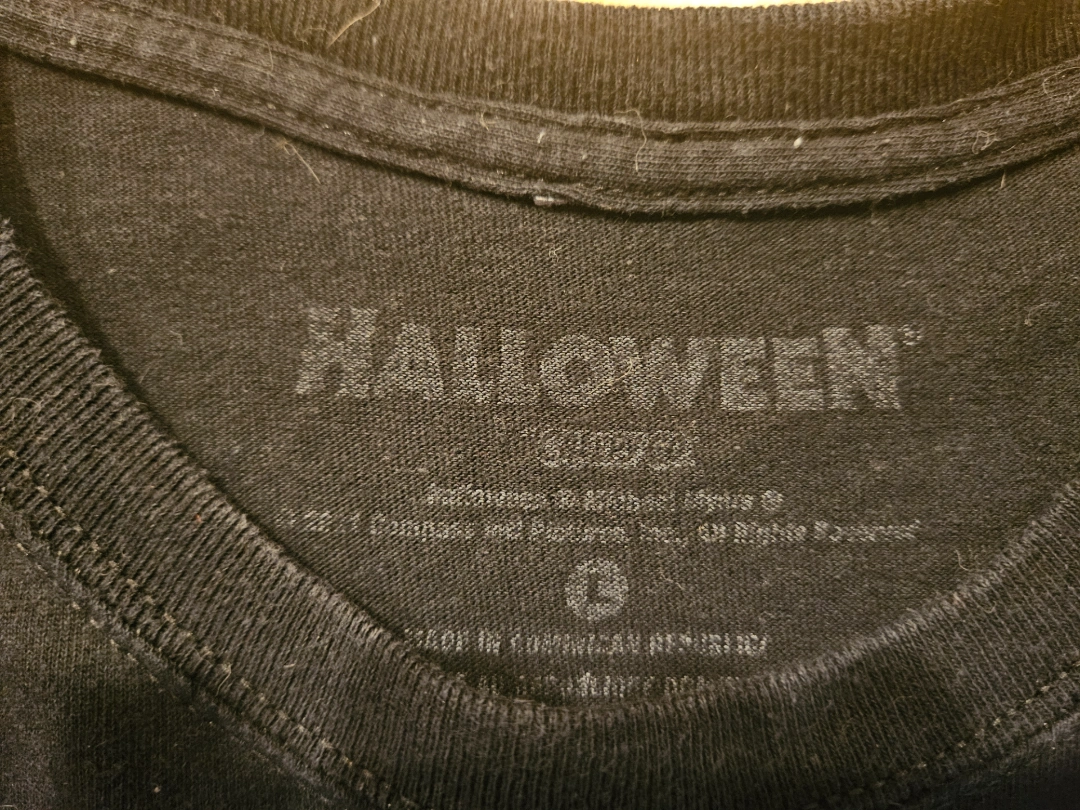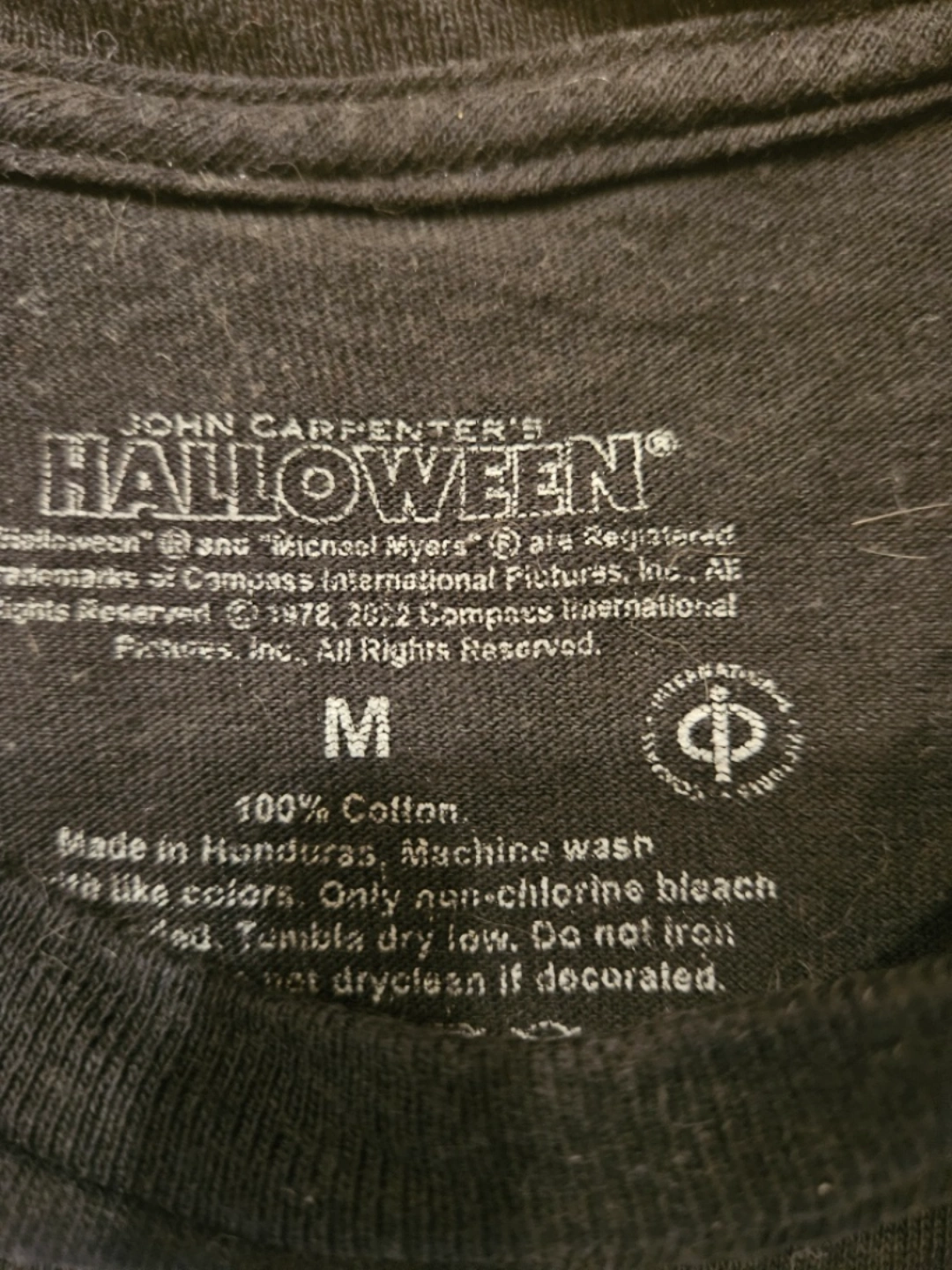 Selling 2 Halloween themed t-shirts featuring Michael Myers! They are both black t-shirts. One is L the other M.. The material is 100% cotton.