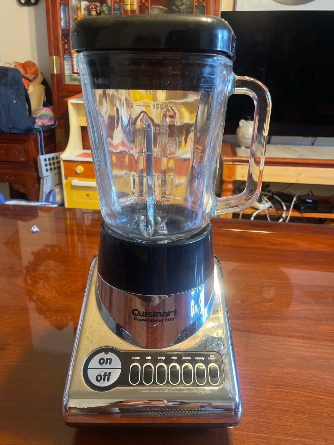 Selling a Cuisinart PowerBlend 600 blender. It's in great condition and ready to help you make smoothies, sauces, and more! It features multiple settings for pulse, stir, chop, mix, puree, liquefy, and ice crush. 1750mL! Glass