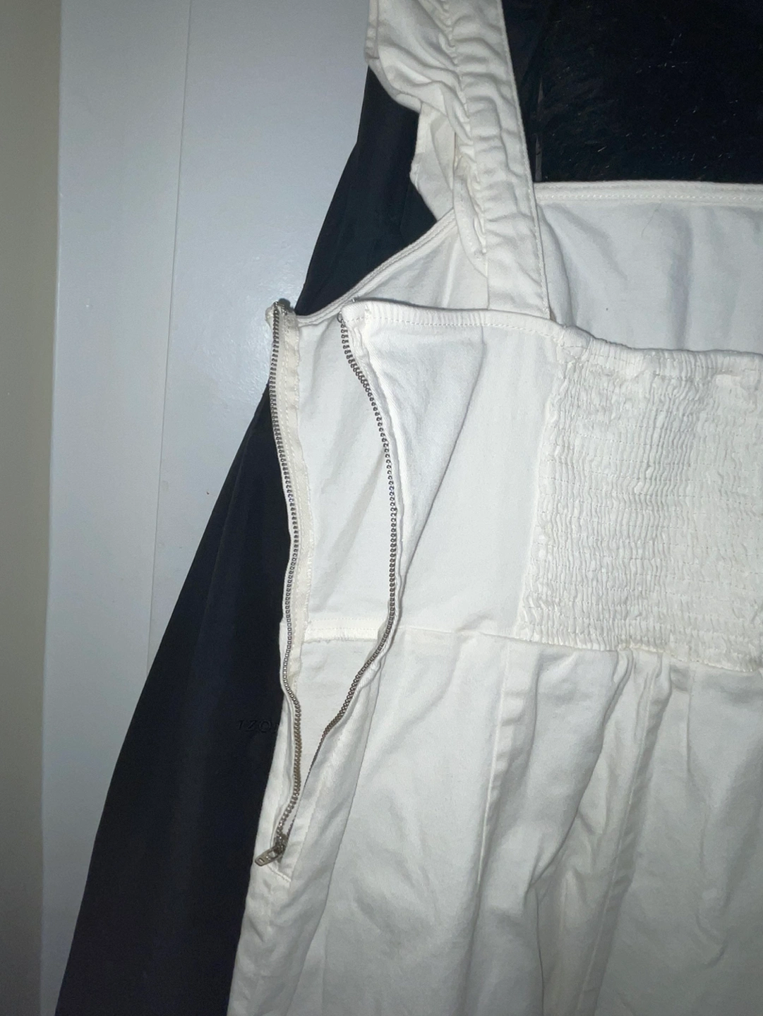Get ready for the summer!! Never been worn Size Large Has zipper on the side for easy fitting Has pockets The shoulder straps are ruffled and so cute Made in Turkey