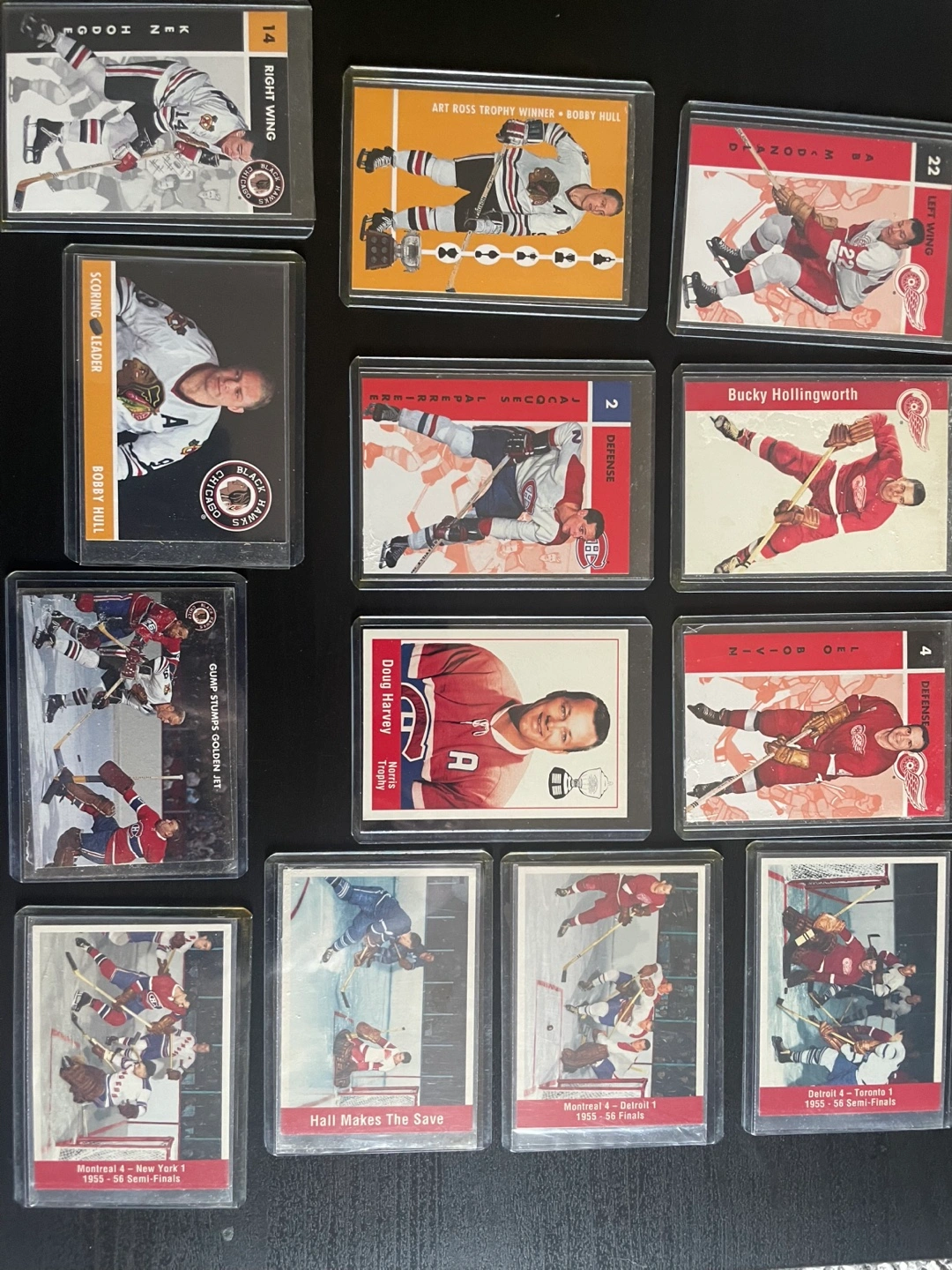Selling a collection of vintage hockey cards featuring some hockey legends! You'll find cards with Bobby Hull, Doug Harvey, Ken Hodge, and others. Great for any hockey fan or collector!