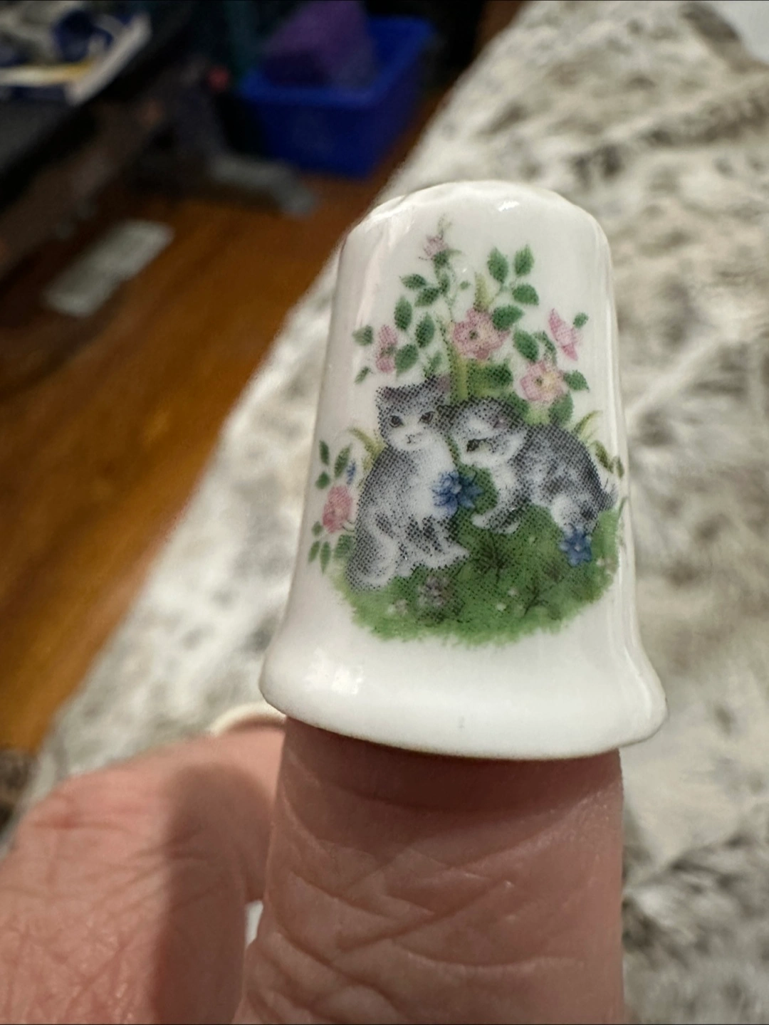 Selling a Fine Bone China thimble, made in England. It features a Niagara-On-The-Lake Ontario design, and a lovely floral and cat design on the other side. A great addition to any collection! Smoke free home