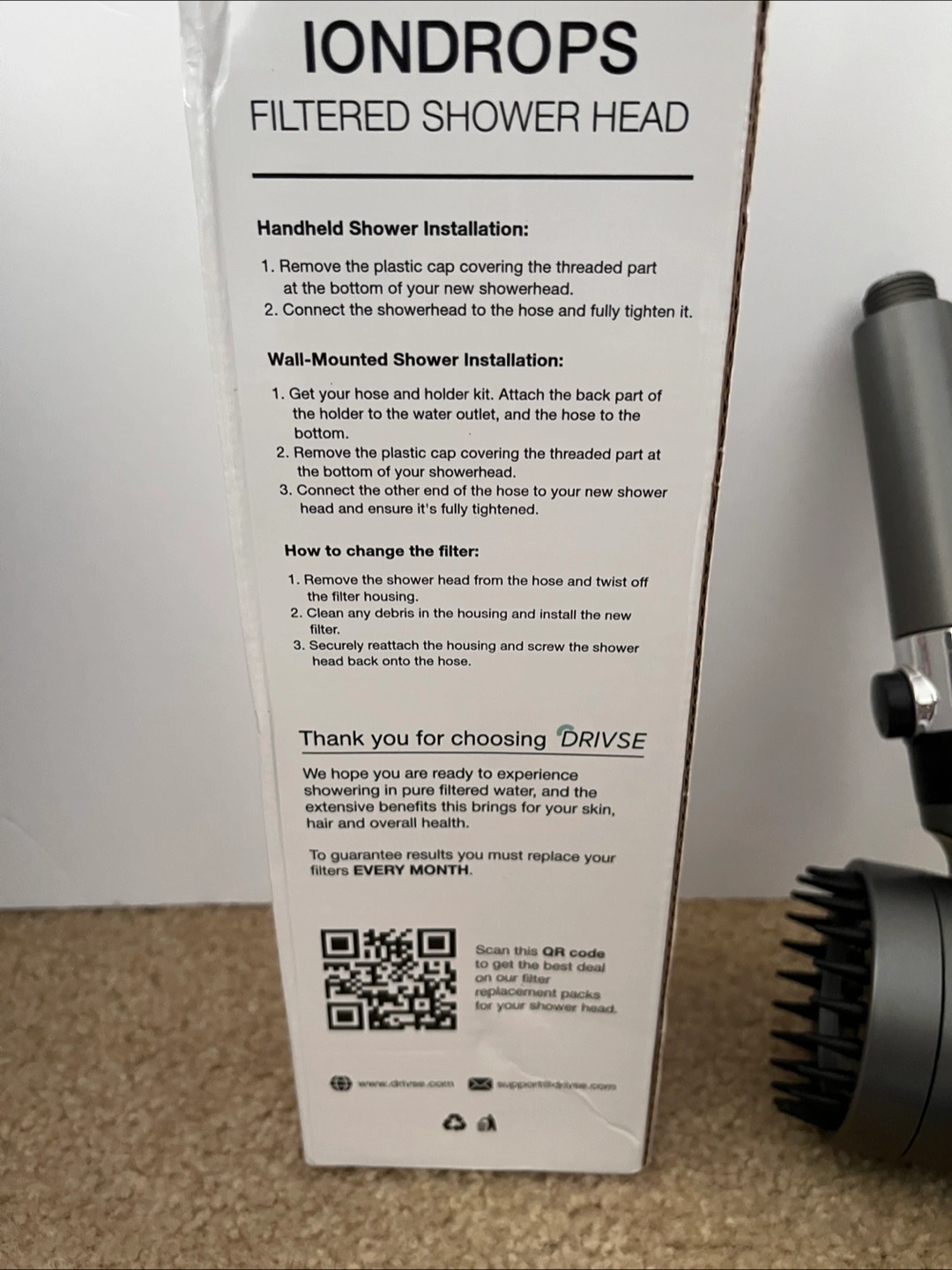 Looking to upgrade your shower experience? I'm selling a DRIVSE IONDROPS filtered shower head! It comes with the original box and filters. The shower head is designed to save water and bring out your natural glow with 100% clean shower water. Enjoy a spa-like shower at home!