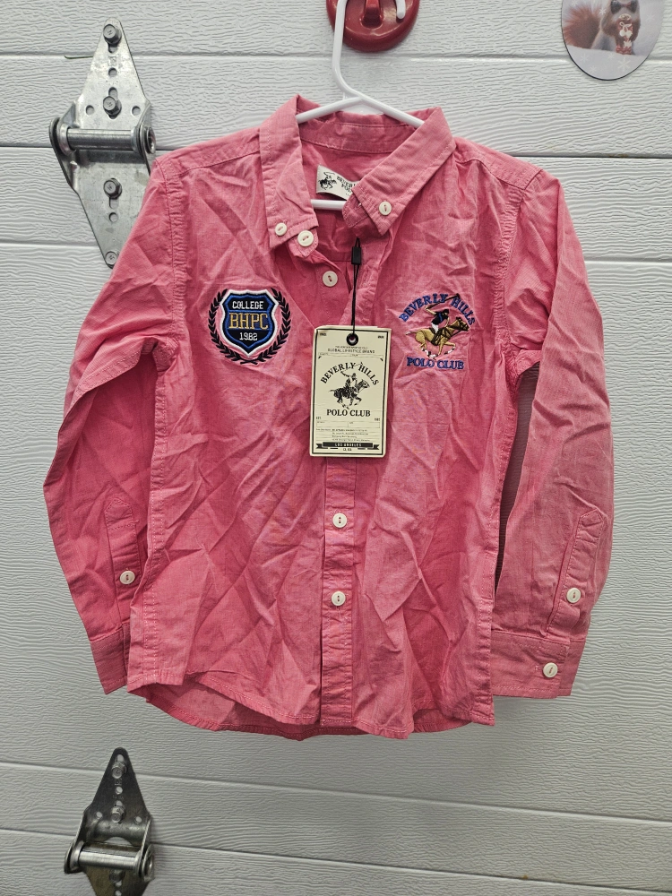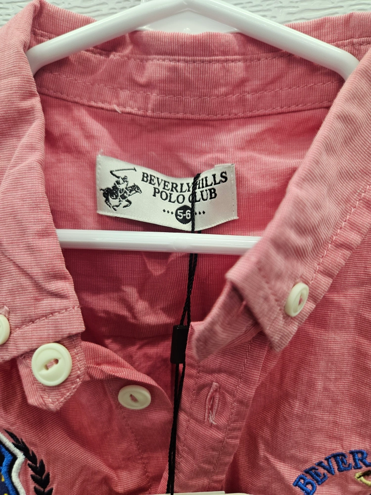 This Beverly Hills Polo Club shirt is in great condition and perfect for a little one! The size is 5-6. It features embroidered logos and a classic button-down style
