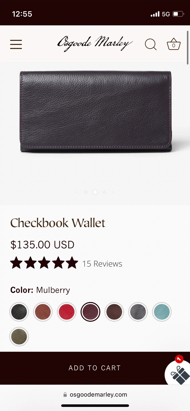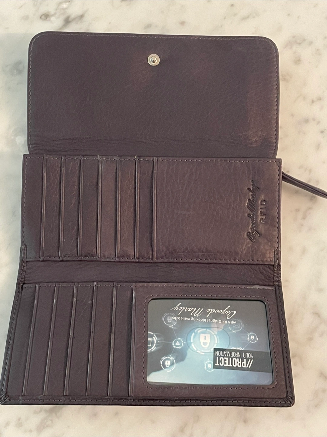 Mulberry colour leather Osgoode Marley checkbook style wallet - never used.