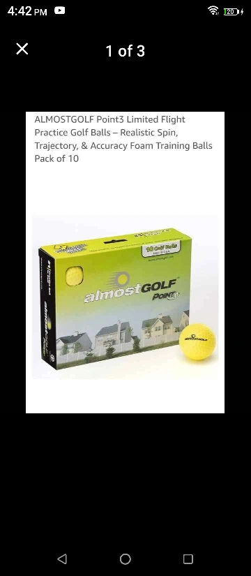 Selling a pack of 10 AlmostGolf Point3 Limited Flight Practice Golf Balls. These are great for practicing your swing with realistic spin, trajectory, and accuracy. Perfect for training!
