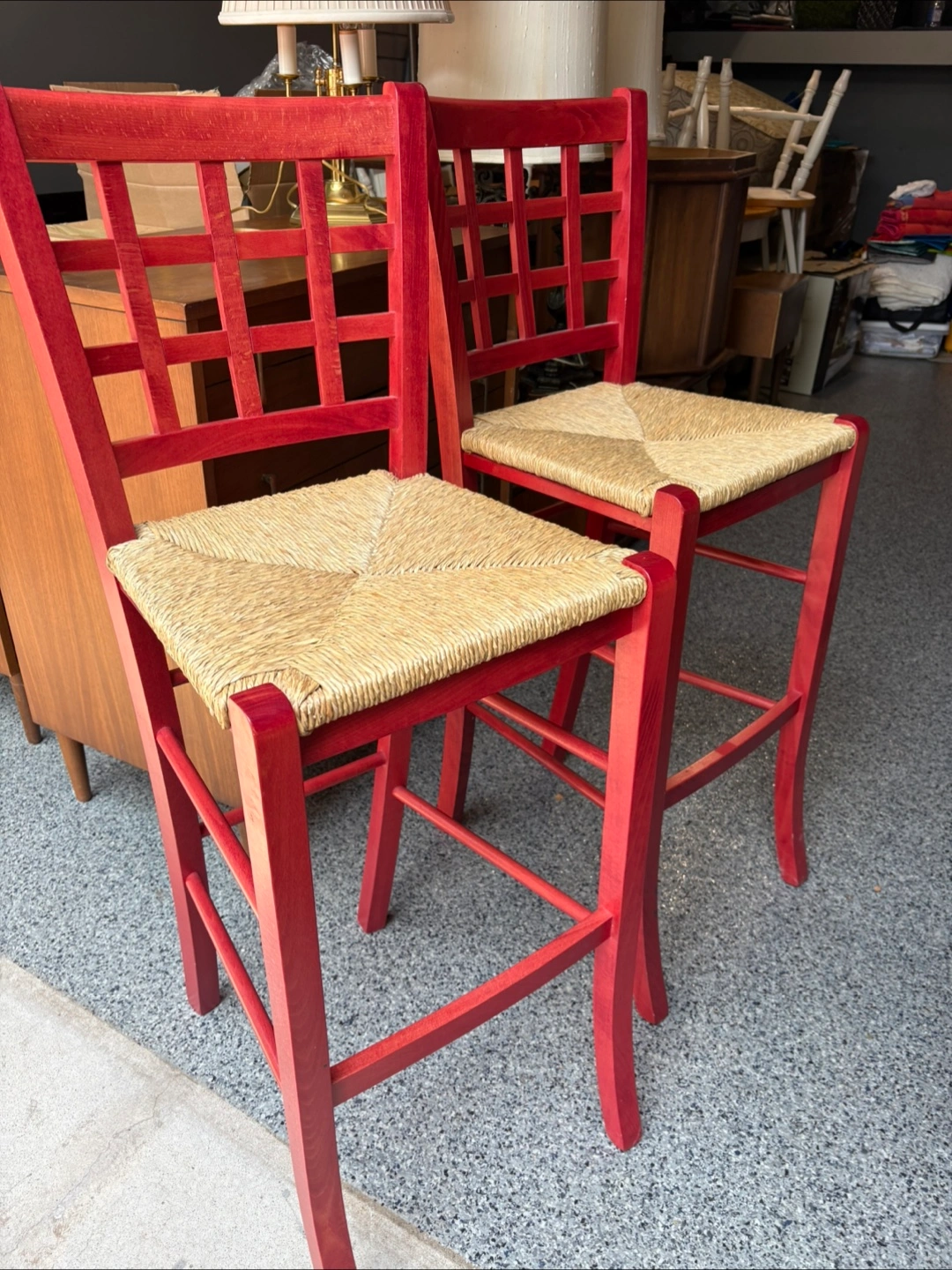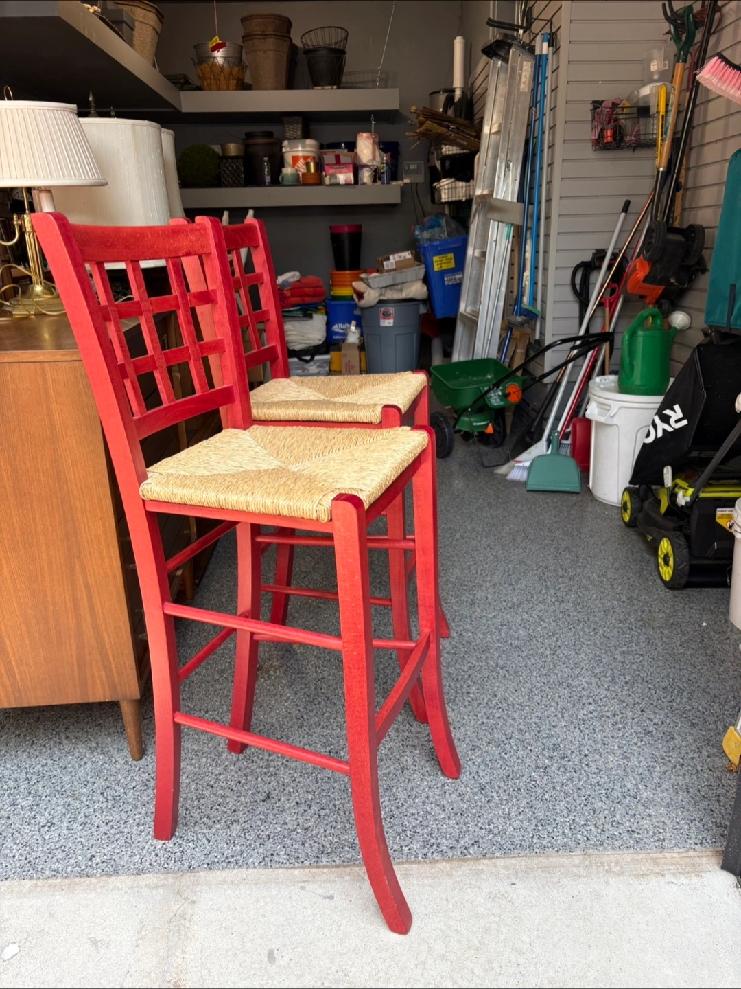 FREE - Red Bar Chairs with Woven Seats - Set of 2