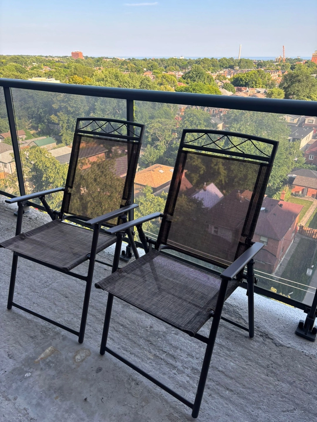 Selling a set of two folding outdoor chairs. They're perfect for balconies, patios, or camping! Easy to fold up and store when not in use. They're brand new.