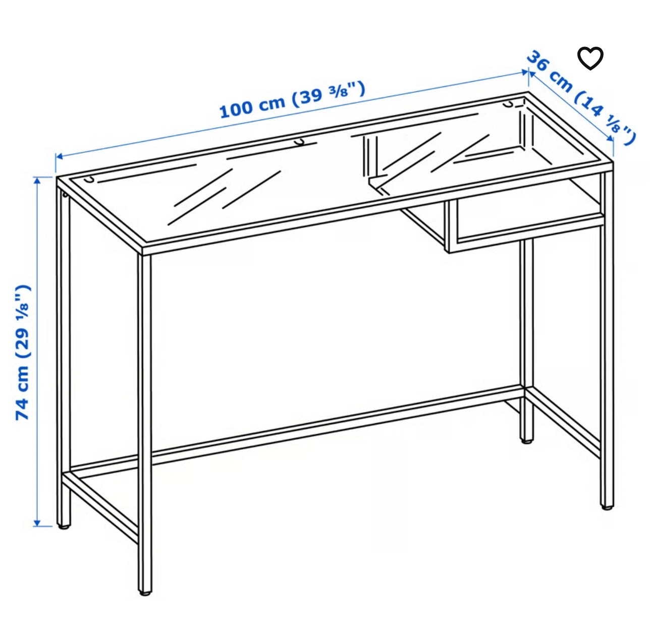 * **Dimensions:** 100 cm (39 3/8 ") x 36 cm (14 1/8") x 74 cm (29 1/8")