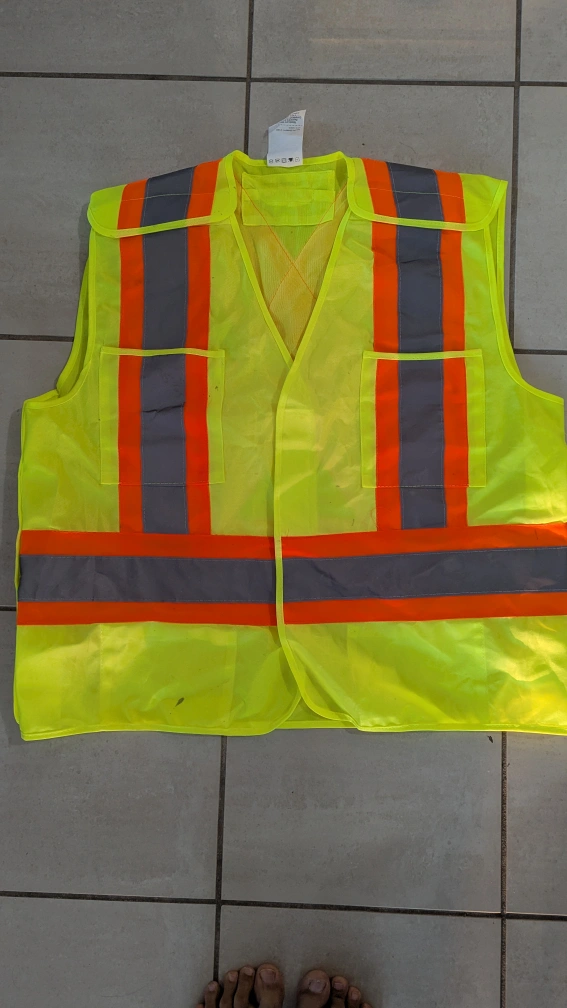 Selling a high visibility safety vest. It's in great condition and ready to keep you safe on the job site. Features bright yellow fabric with reflective stripes for maximum visibility